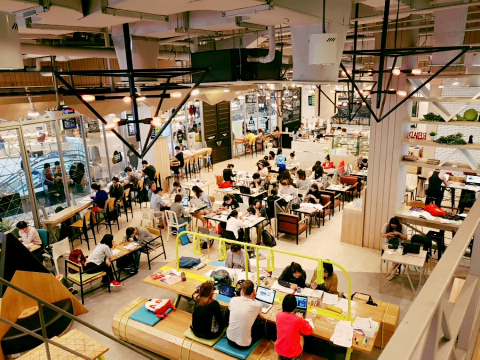 님만해민 쪽만 해도 24시간 이용할 수 있는 카페가 'WAKE UP', '탐앤탐스', 'WIDE-AWAKE' 그리고 무료 카페이자 코워킹스페이스로도 쓰이는 'CAMP'까지 여러 곳이 있는데, 수많은 이 곳 학생들이 공부하고 있는 모습을 볼 수 있다.