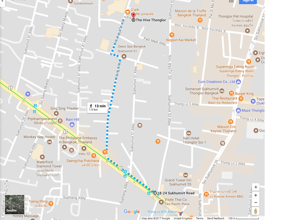 이 곳의 위치는 에까마이 역에서 1km 정도로 거리가 있는 편이었다. 걷기보단 오토바이 택시 등을 타고 가는 게 좋을 듯하다.