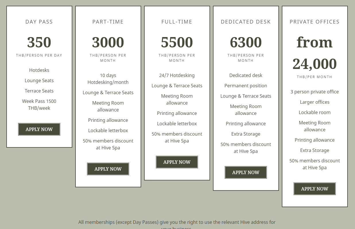 가격은 Share Desk는 1일 300밧(1만 원가량) 한 달엔 3,000바트 였고, Fixed Desk는 한 달 5,900바트 였다.