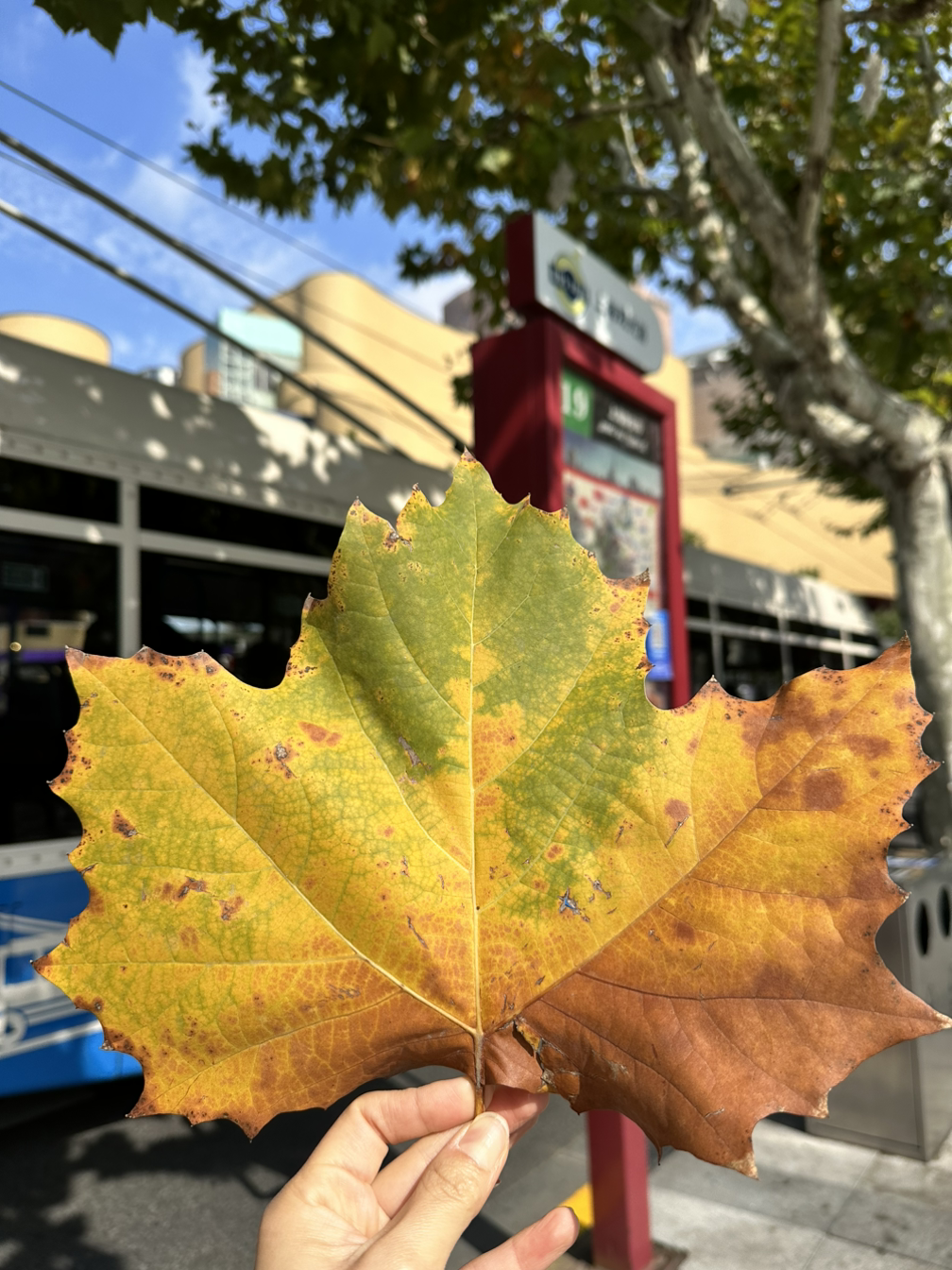 철부지의 철은 계절을 가리키는데, 우리가 흔히 쓰는 ‘철부지’의 속 뜻은 철을 알지 못하는(不知) 사람이라는 말이다. 상하이에서는 철부지가 될 수 없다. 무엇보다 철을 따라 변하는 하늘과 방대한 플라타너스 나무 덕분이다. 겨우 내 앙상한 가지에 푸릇푸릇한 이파리가 돋아나며 한동안은 성장통을 가루로 퍼트리다가, 제법 커진 이파리가 한 여름 동안 시원한 그늘을 만들어 준다. 그렇게 한참을 우거지게 있다가 11월이 되면 노랗게 붉게 색이 바래다 낙엽이 된다. 그때부터 거리를 청소하는 분들이 낙엽을 치우느라 한동안 분주한 하루하루를 보내신다.
