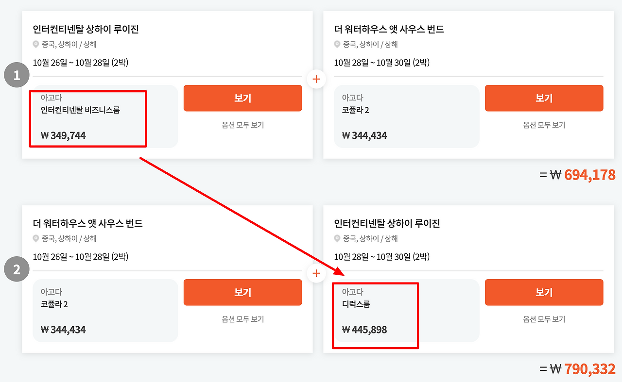 그런데 사용해 보니 재미있네요. 호텔을 2개 이상 입력하면 자동으로 호텔 순서에 따른 요금을 최저가부터 뽑아줍니다. 심지어 객실 종류도, 날짜만 앞뒤로 바뀌었는데 가격은 싸고 더 좋은 객실이 나오기도 합니다. 상하이 5성급 호텔 두 곳을 2박씩 돌려보니 호텔 순서만 앞뒤로 바뀌었을 뿐인데, 최대 20만원까지 차이가 발생하네요. 자세한 내용은 팟캐스트 '김다영의 똑똑한 여행 트렌드'에서 계속 들어보세요. 방송 바로 가기 팟티 오디오클립 아이튠즈