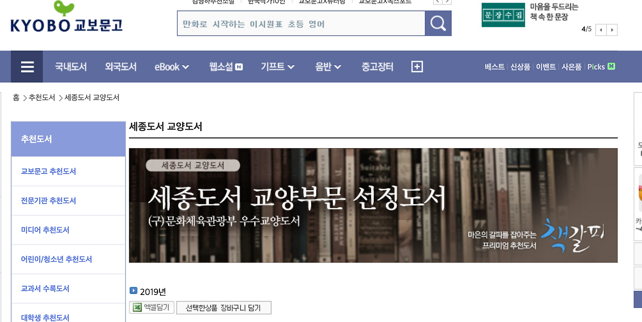 교보문고가 추천 도서로 따로 소개하는, 세종도서 선정 도서.