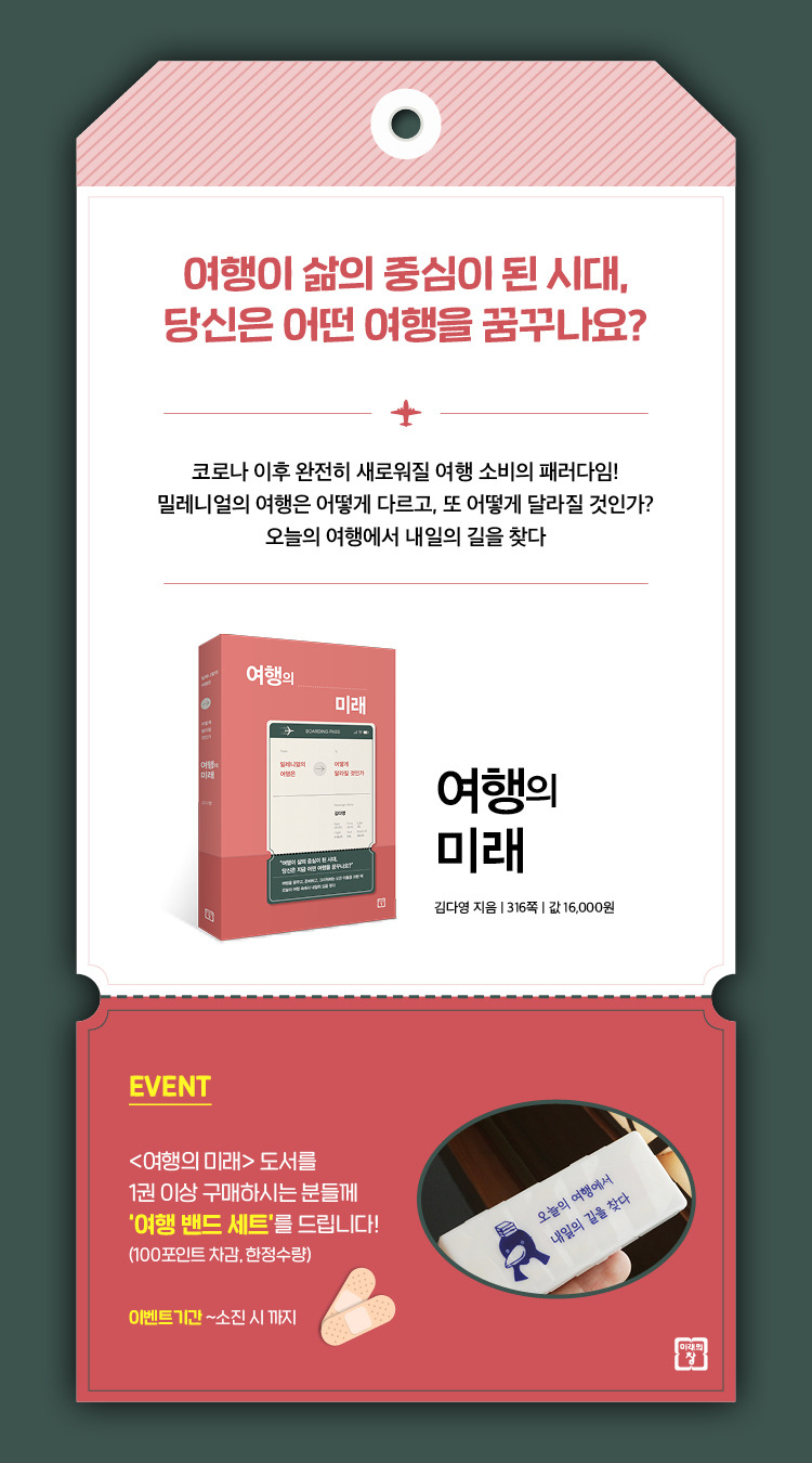 혹시 아직 <여행의 미래>를 못 사셨다면! 교보문고에서 책을 구매하시면 특별한 선물이 딸려 옵니다.:)