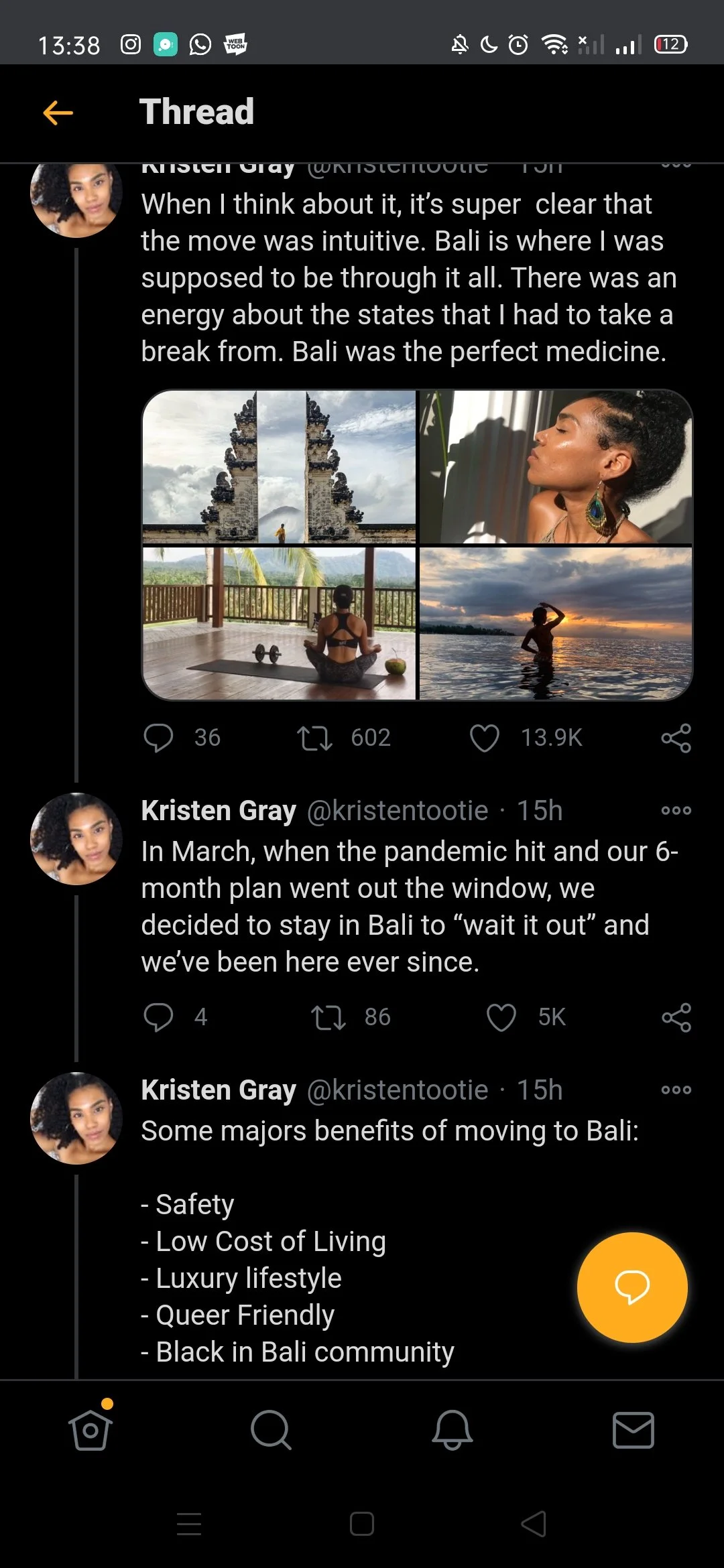 그러자 노마드 여행자들은 남미의 휴양지, 아시아의 발리와 푸켓 등 미국보다 거주 비용이 저렴한 여행지를 골라 다니며 장기 거주하는 일을 자랑삼아 SNS에 올리며 질타를 받고 있습니다. 가장 최근에는 2021년 1월 트위터를 뜨겁게 달구었던 사건이 있죠? 미국인 여성의 '코로나 시국에 발리에 와서 살아야 하는 이유'라는 글이 엄청난 논쟁의 대상이 되었습니다. 그녀는 LA에서는 1300$의 집세를 내고 코로나 이후 파산에 가까운 생활을 해야 했지만, 발리에서는 400$짜리 트리하우스에서 삶의 질을 높였다는 내용을 게시했습니다.