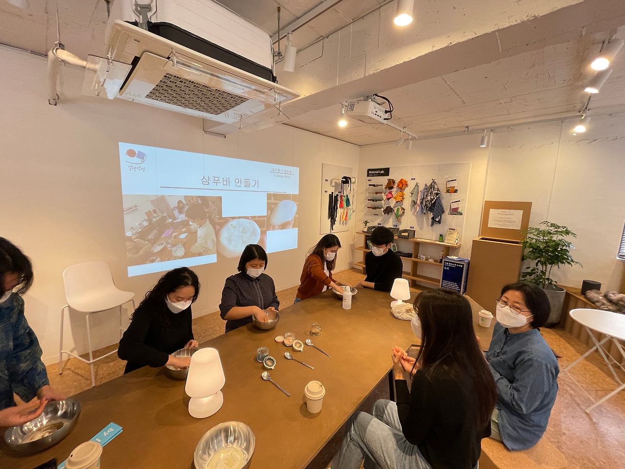 샴푸바 만들기에 앞서, '플라스틱이 지구에 미치는 영향' 강의를 들었다. 이미 수 백회를 진행했다는 강의답게, 플라스틱 쓰레기의 폐해를 담은 강의는 물흘러가듯 이어졌다. ESG가 대세가 되면서 친환경이 가장 큰 화두로 자리 잡고 있어, 시의성을 잘 잡은 사업이자 교육 테마라는 생각도 들었다.