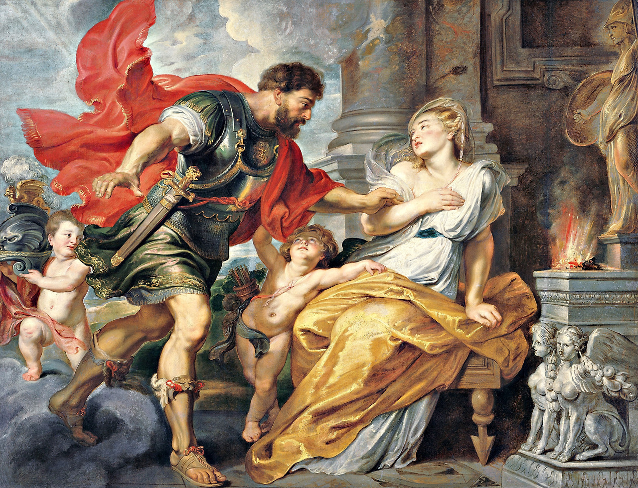 전쟁의 신 아레스는 제우스와 헤라 여신의 둘째 아들로 태어나 세상 무서울 게 하나 없었습니다. 로마식 이름은 마르스입니다. 마르스는 어느 날 잠든 처녀 레아 실비아의 모습에 반해 하늘에서 급히 내려옵니다. 실비아는 알바룽가 왕국의 공주였지만 아버지를 죽이고 왕이 된 숙부 때문에 베스타 신전에 갇혀 있었습니다. 잠깐 잠들어 있다가 졸지에 마르스에게 겁탈당하는 겁니다. 피터 폴 루벤스가 이 장면을 생생하게 그렸습니다. '마르스와 레아 실비아(Mars et Rhea Sylvia)'라는 제목의 이 작품은 비엔나의 리히텐슈타인 박물관에 보관되어 있습니다.