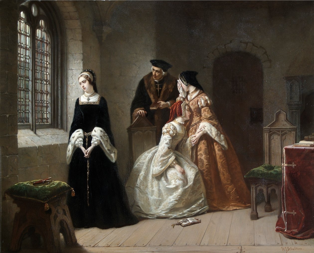 앞서의 제인 그레이도 신교도였다. 가톨릭으로 개종하면 살려준다 했지만 본인이 거부하고 죽음을 받아들였다. 메리 1세 여왕에겐 이복동생 엘리자베스 역시 어머니 원수의 딸이었다. 게다가 신교도였다. 시골로 피신해 병석에 누워 있던 엘리자베스는 언니 메리 1세가 보낸 병력에 체포되어 런던타워에 갇히는 신세가 된다.