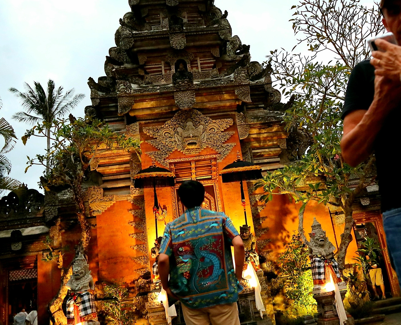 우붓에 도착한 날, 우붓 왕궁에서 행사가 있었습니다. 왕궁 앞 도로가 사람과 차로 가득했어요. 저는 이런 축제 분위기를 좋아합니다. 지난겨울, 스페인의 세비야에 3일 정도 머물렀는데 그때의 기억이 황홀하게 남아 있는 이유도 도시에 감도는 축제 분위기 때문이었어요. 늦은 밤까지 거리를 오가는 사람들, 노천의 테이블을 소박하게 채우는 술과 음식과 촛불과 말소리들, 작고 허름한 재즈바에서 이름도 모르는 음악을 서서 진지하게 감상했던 기억. 이런 게 좋은 거죠. 우붓도 비슷했어요. 조용하고 느긋하지만 끊임없이 말하고 움직이는 사람들이 만들어내는 즐거운 역동감이 있었습니다. 이런 조화가 어떻게 가능할까요.
