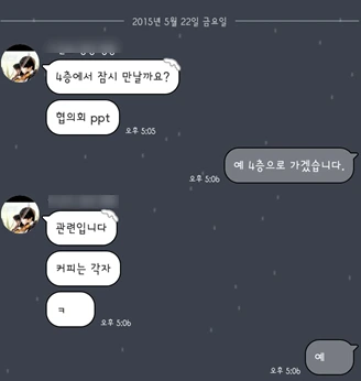 B검사는 내 견해를 대신 얘기해주며 카톡으로 메시지 보내지 마시고 전화로 이야기하시고 당분간 회의 시에는 가급적 E부장을 참석시켜 진행하라고 함