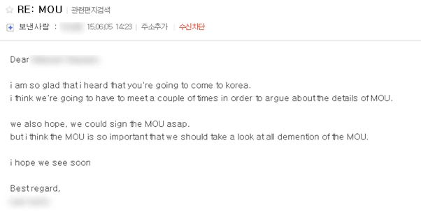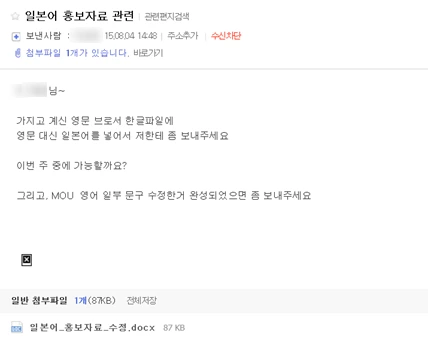 개인 메일로 메일을 보내어 MOU 독촉을 하고 이번에는 일본어를 추가로 번역해달라고 함