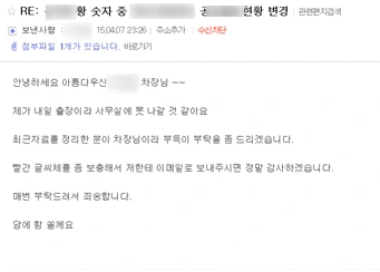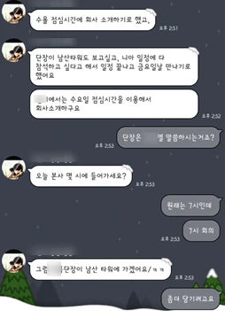 나는 그 내용도 모르니 그 내용에 대하여서도 이 부장에게 다시 확인하라고 함. 그러자 A사 업무가 아니어서 나에게 주어야 한다고 함. 그래서 나는 A사 업무가 아닌데 왜 내가 해야 하냐고 되물음.
