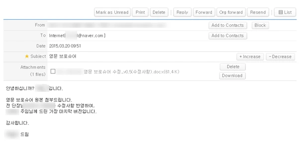 그런 다음에 다시 영문 브로셔 언제 되냐고 또 독촉 전화가 오길래 바로 보내줌