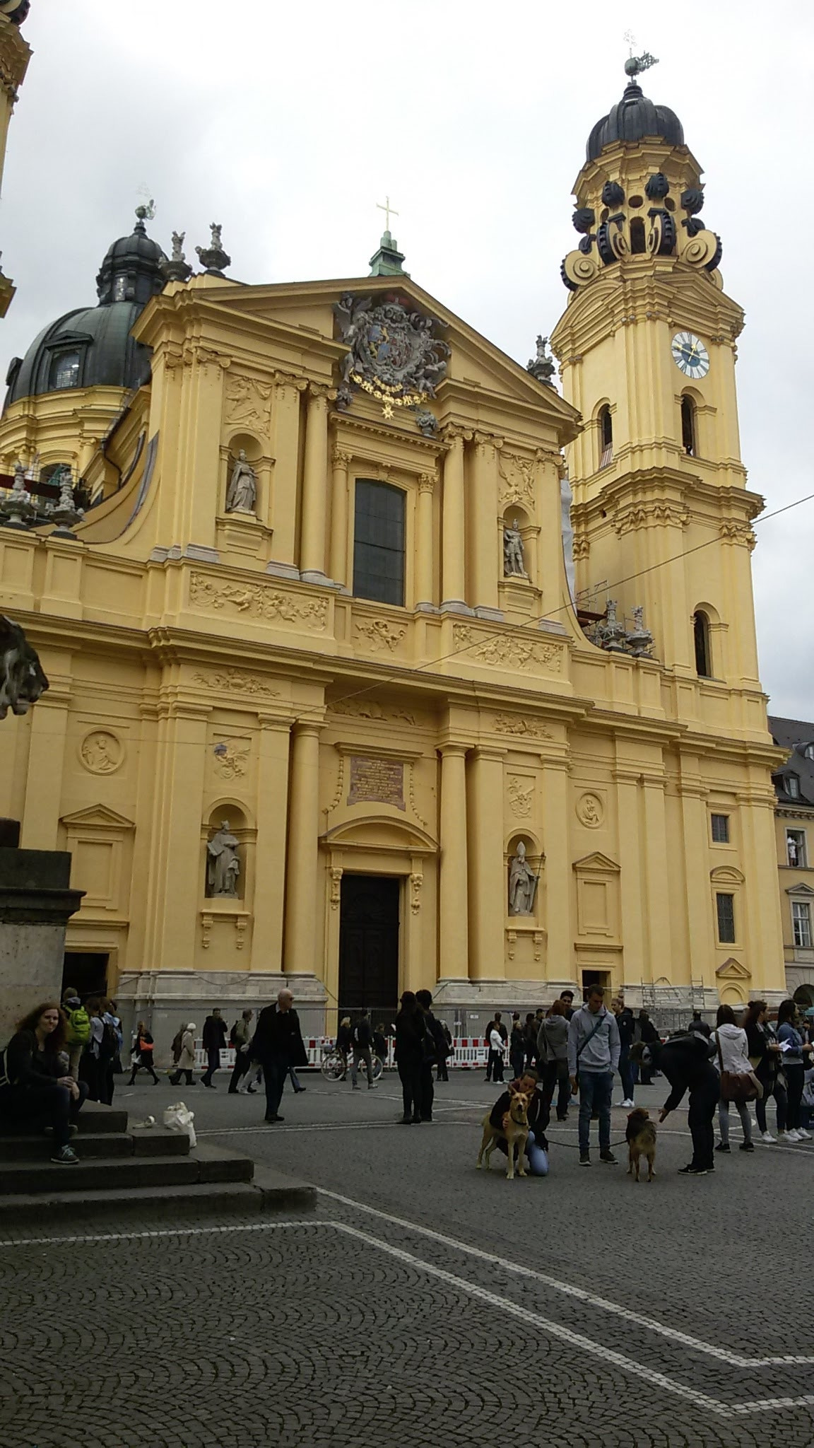 가운데에 피렌체에서 본 것과 비슷한 조각상이 있는 건물이 있고, 왼쪽에 레지던츠, 오른쪽에 노란색의 대성당이 있다.