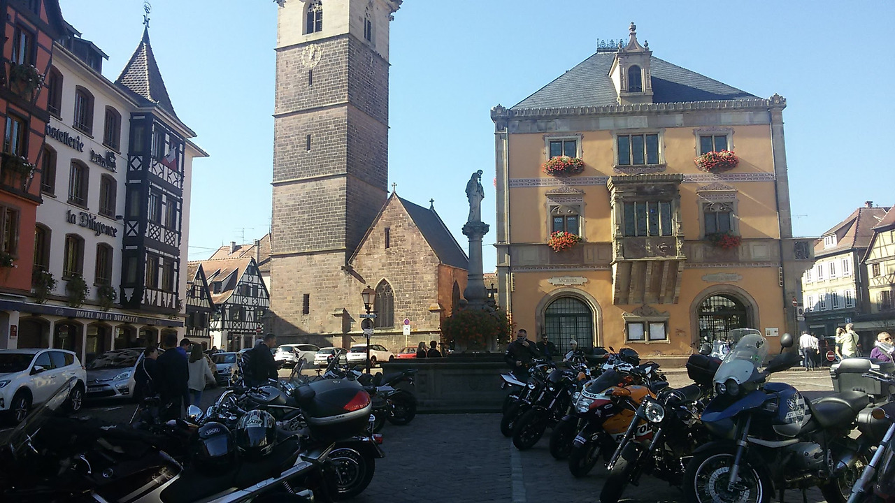 남편이 급하게 검색해서 찾아낸 오베르네 라는 숨겨진 아름다운 도시로 간다. 작은 마을이 성벽으로 두 겹이나 둘러싸여 있고, 마을 전체가 목조 골재에 회벽을 한 옛날식 가옥들로만 가득한 마을이다. 작은 마을인데 마을 곳곳에 주차장도 많은 걸 보니 관광객이 많이 오긴 하나보다. 그런데 단체나 동양인 관광객은 보기 힘들었다. 조그만 광장에는 오토바이 여행객들이 많은 것이 특이하다.