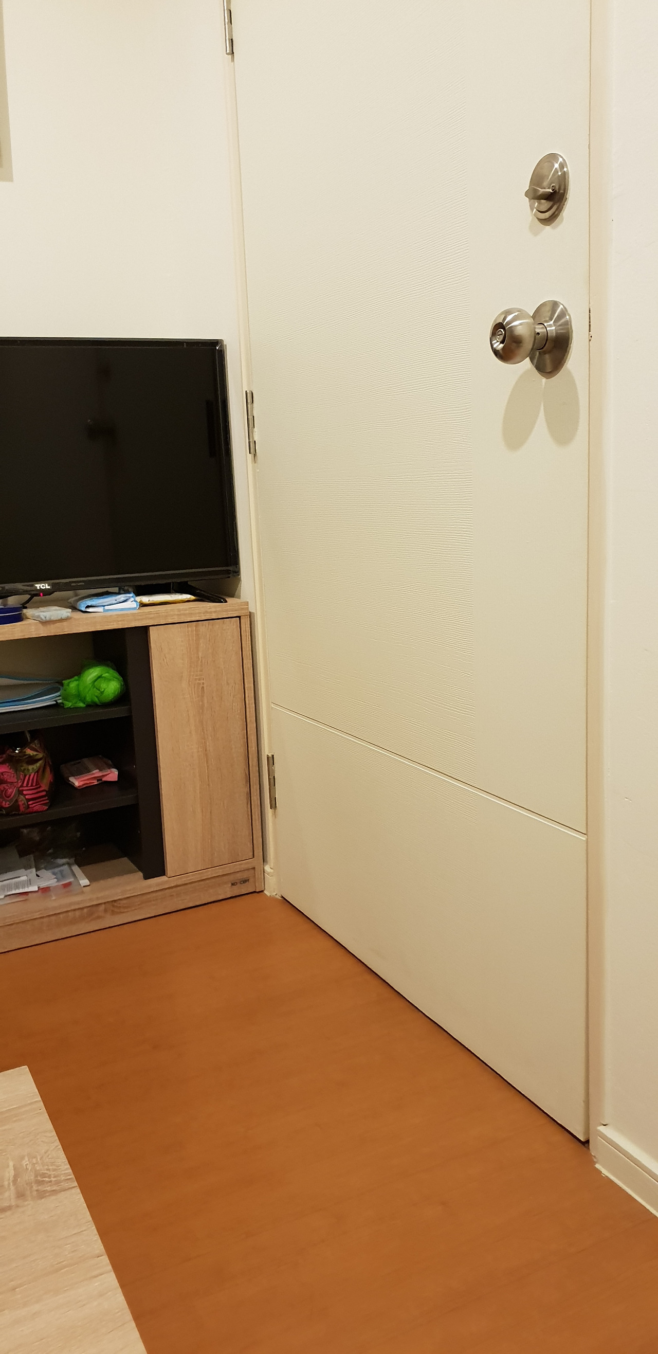 아파트 문을 열면 바로 거실이다. 신발을 벗어 놓을 수 있는 현관이 없다. 그렇다고 서양처럼 신을 신고 들어가는 것도 아니다. 파타야 아파트 엘리베이터 에는 복도에 신발을 벗어 놓지 말라는 경고 문구가 있었다. 파타야 에서는 가뜩이나 좁은 집에 소파옆 에 신발을 벗어 놓았었는데, 가끔 소파에 앉아 있으면 신발냄새가 나기도했다. 치앙마이에서는 집이 좀 넓기도 하고 문 안에 산발장이 있다. 그래도 현관은 없고 거실 한구석에 있는 셈이다.