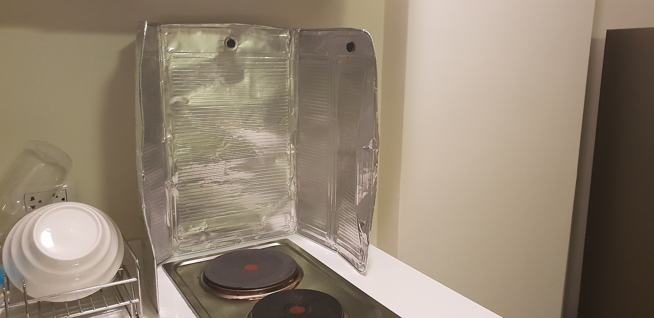 주방이 없는 집이 많아서 주방시설에 대한 이해가 없는 것같다. 싱크대, 레인지 뒷벽이 거실과 똑같이 페인트칠한 벽이다. 특히 레인지 뒷벽은 음식 조리시 기름이나 음식물이 튀면 닦기가 쉽지 않겠다. 치앙마이에서 우리가 빌린 집은 캠핑할 때 바람막이로 쓰는 알미늄 호일판을 갖다 놓았다.