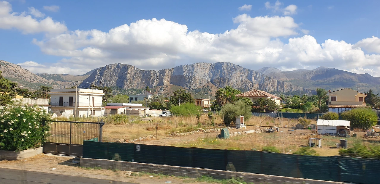 로마 피우미치노공항에서 라이언에어를 타고 팔레르모 공항에 내렸다. 맨 처음 보이는 것은 황량한 바위산들. 한편은 나무도 없는 높직한 바위산들이 막아서 있고 한편은 해변인 길을 달려 팔레르모 시내에 도착했다. 공항은 작고, 공항버스는 한노선뿐이라 타기 쉬웠다. 공항내에 티켓부스가 있어서 1인당 6유로에 편도티켓을 구매했다. 신시가지를 통과해 가는데 여러번 정차하니 구글지도를 보고 있다가 내리면 된다.