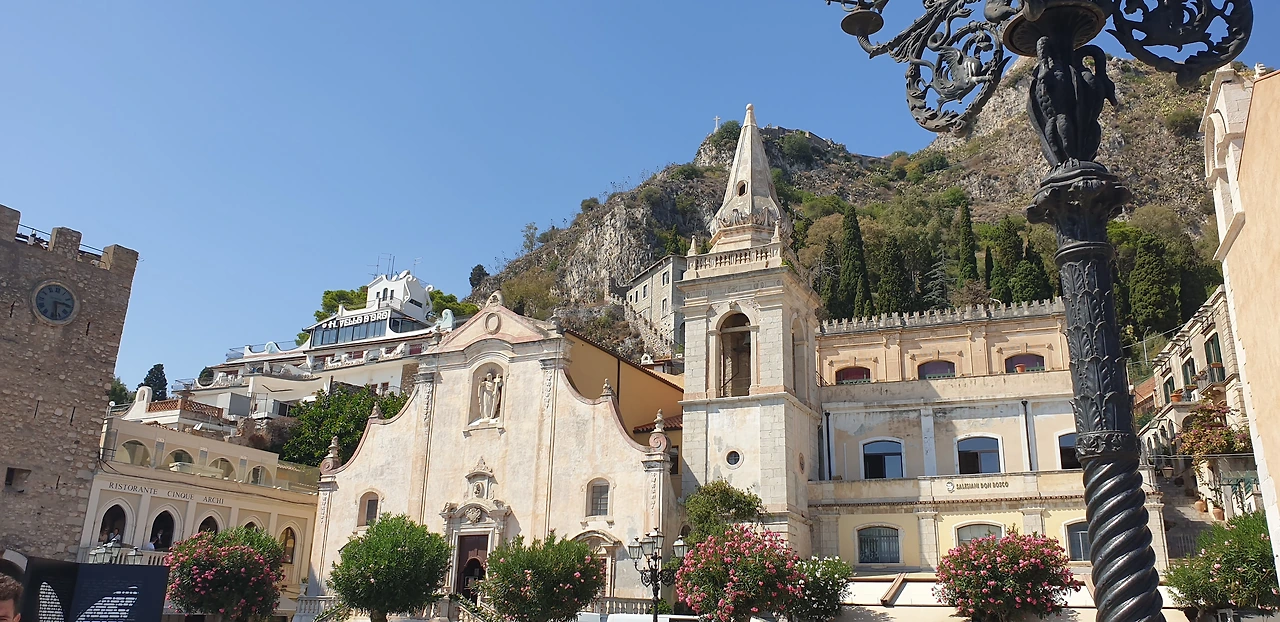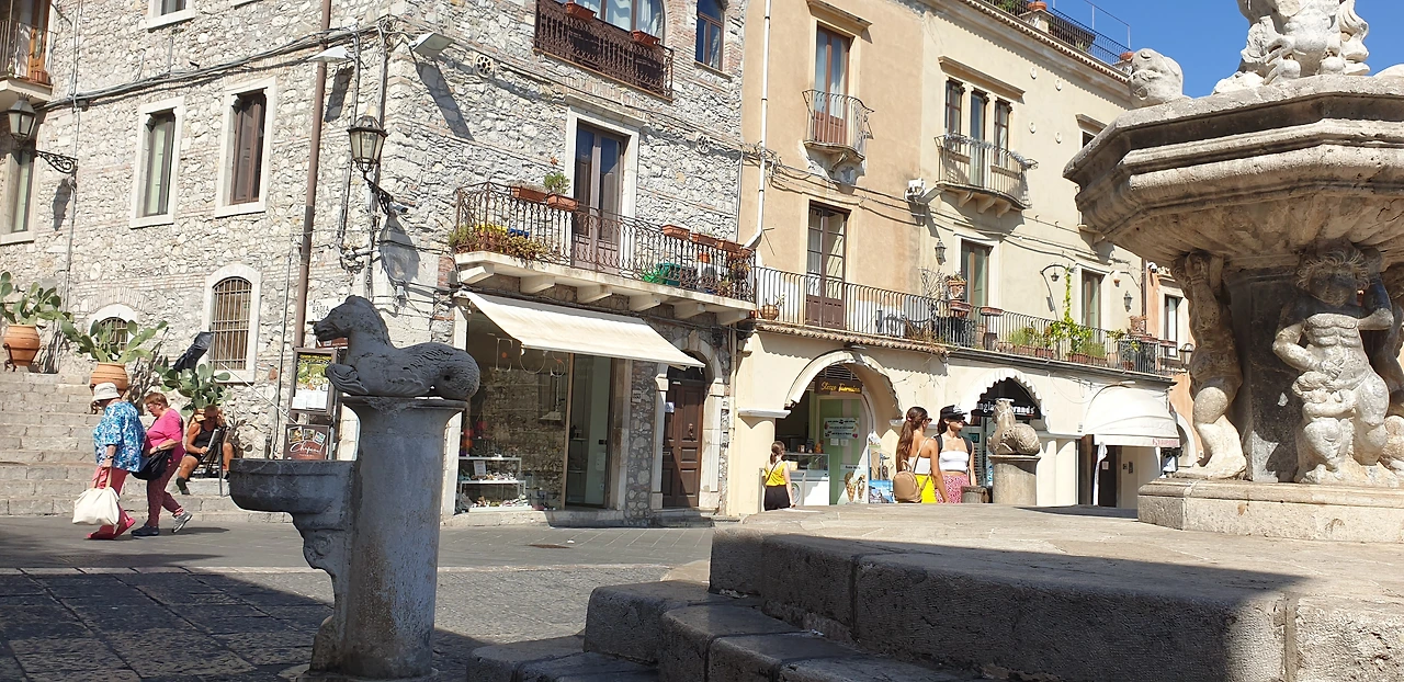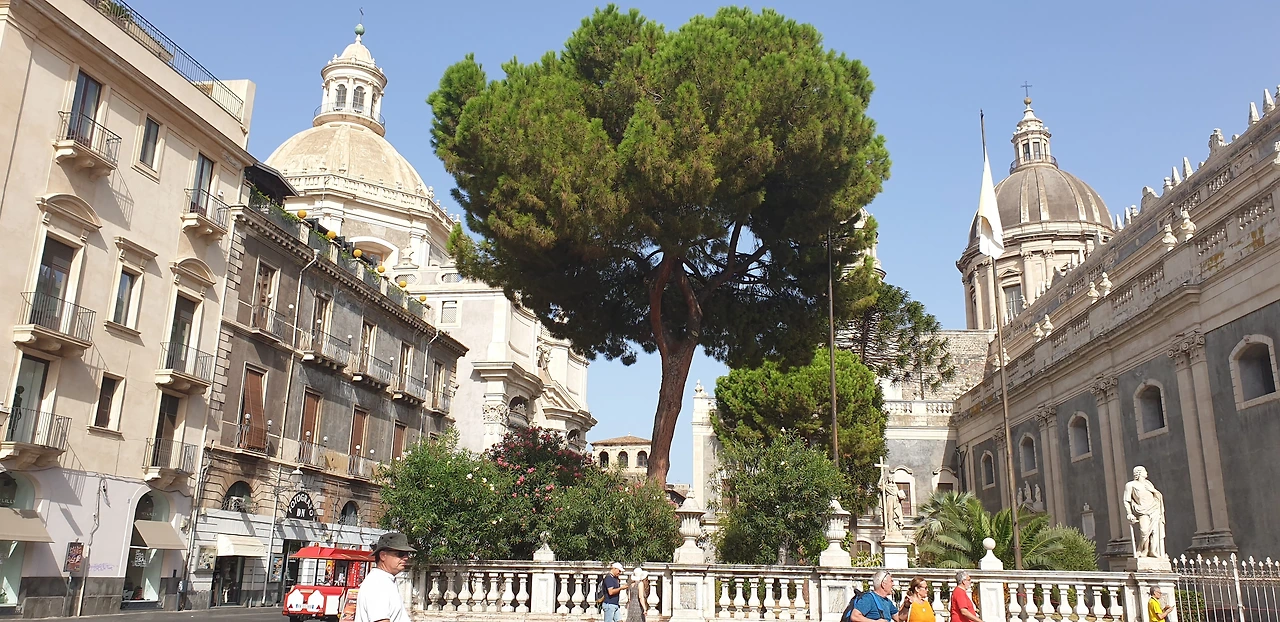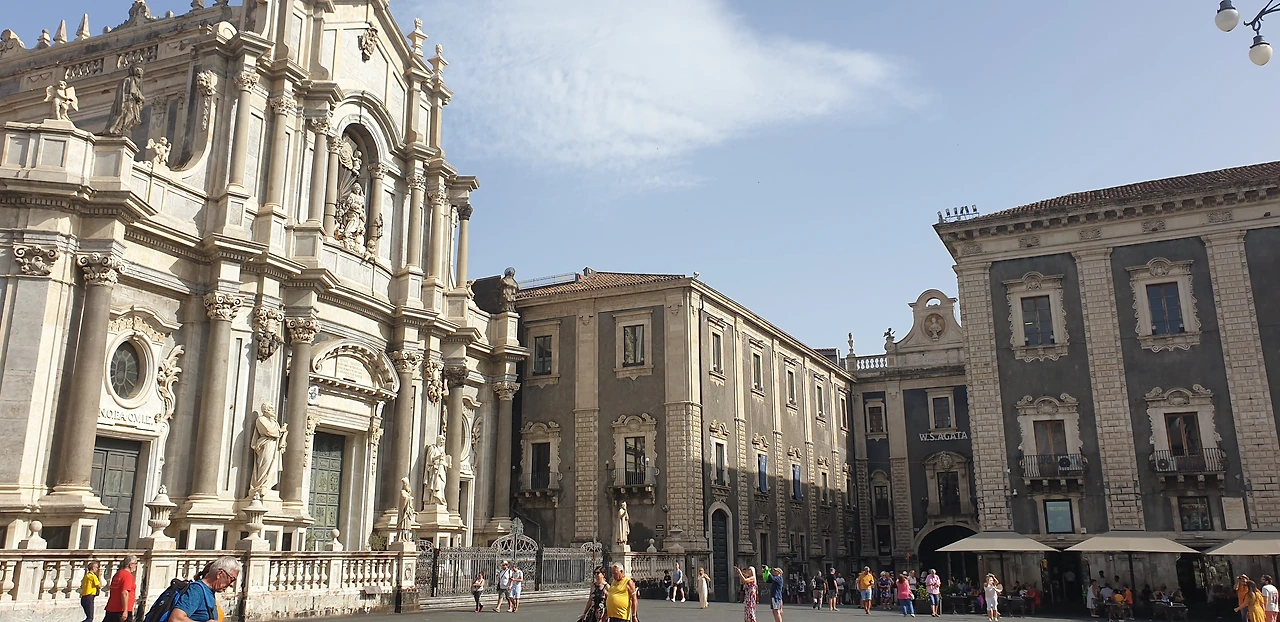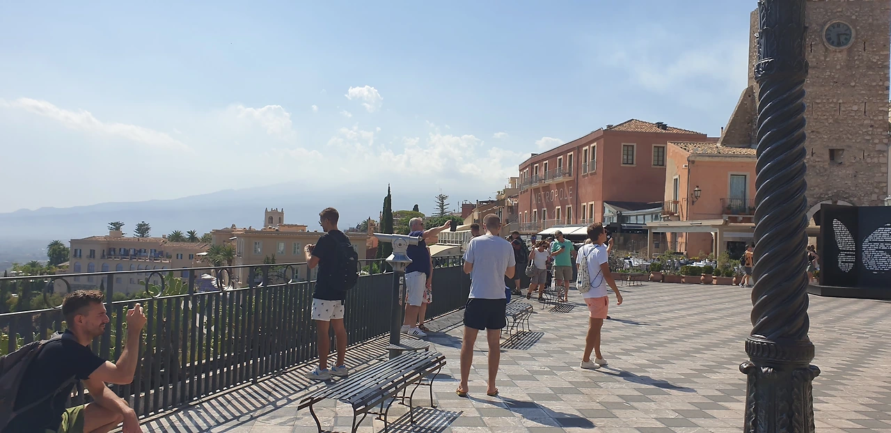 크게 기대하지 않았던 구시가지 쇼핑거리는 생각보다 크고 , 중간에 만나는 커다란 테라스광장이 뷰가 아름다웠다. 여기서도 바다와 에트나산이 보였지만 정상은 구름에 가려 역시나 볼 수 없었다.