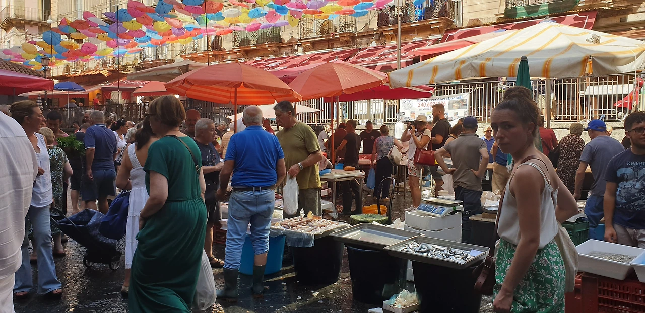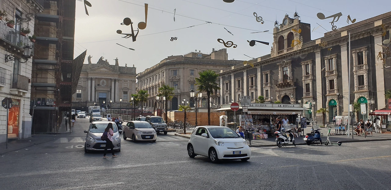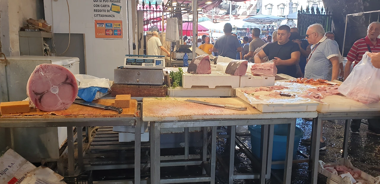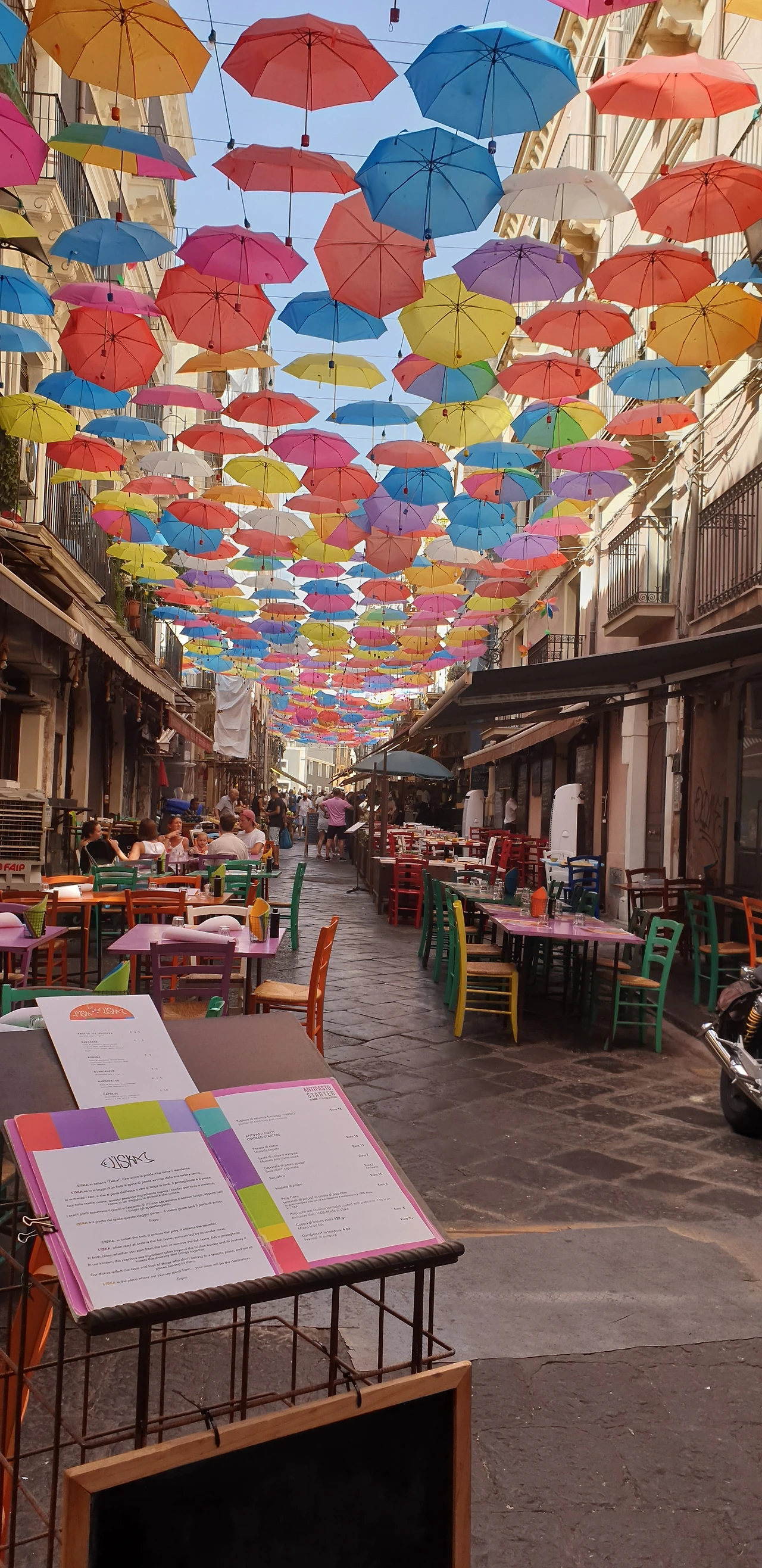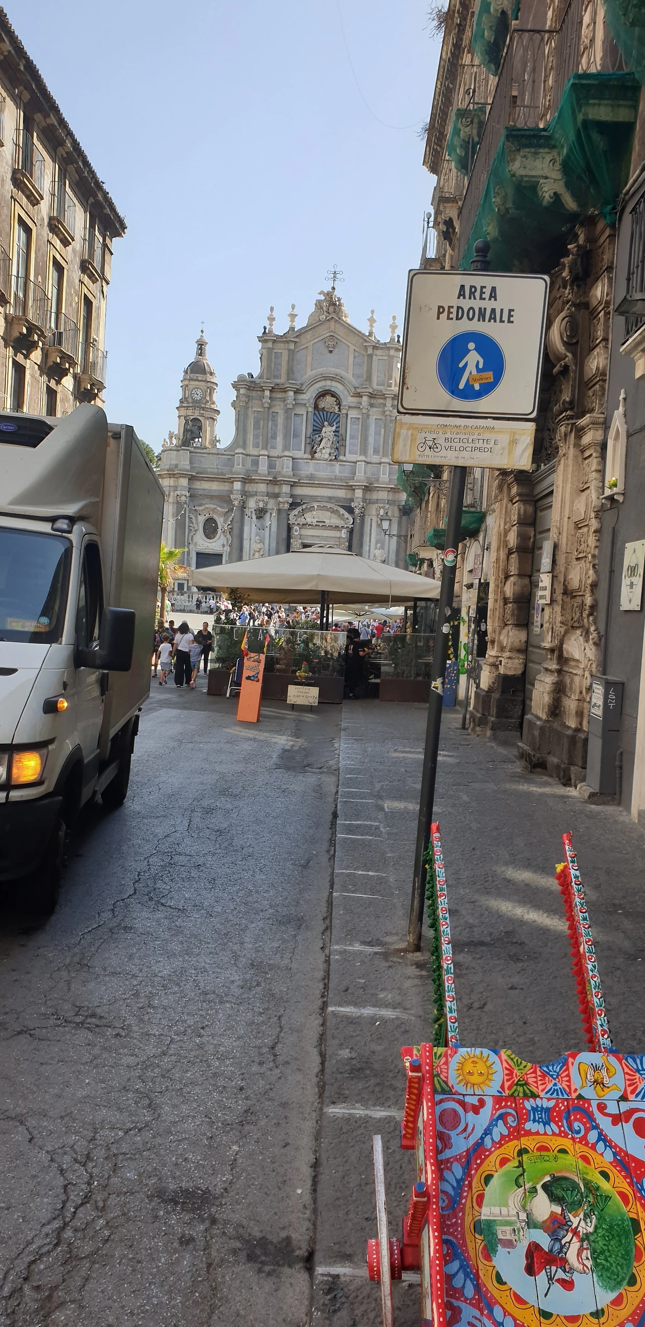 크게 기대하지 않았던 구시가지 쇼핑거리는 생각보다 크고 , 중간에 만나는 커다란 테라스광장이 뷰가 아름다웠다. 여기서도 바다와 에트나산이 보였지만 정상은 구름에 가려 역시나 볼 수 없었다.