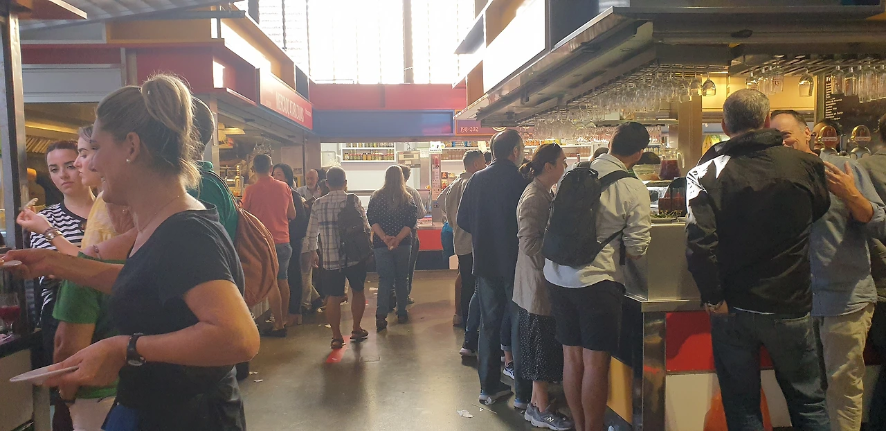 이렇게 활기차고 사람이 북적이는 도시도 보기 힘들었다. 관광객도 현지인도 길에 많이 다니고, 우리 숙소 근처에 재래시장이 있는데 시장을 뺑둘러 탁자와 의자가 놓이고, 술 한잔에 타파스, 음식을 먹는 현지인들이 왁자지껄, 가게 앞에는 서서 먹는 사람들로 골목이 꽉 차있다.