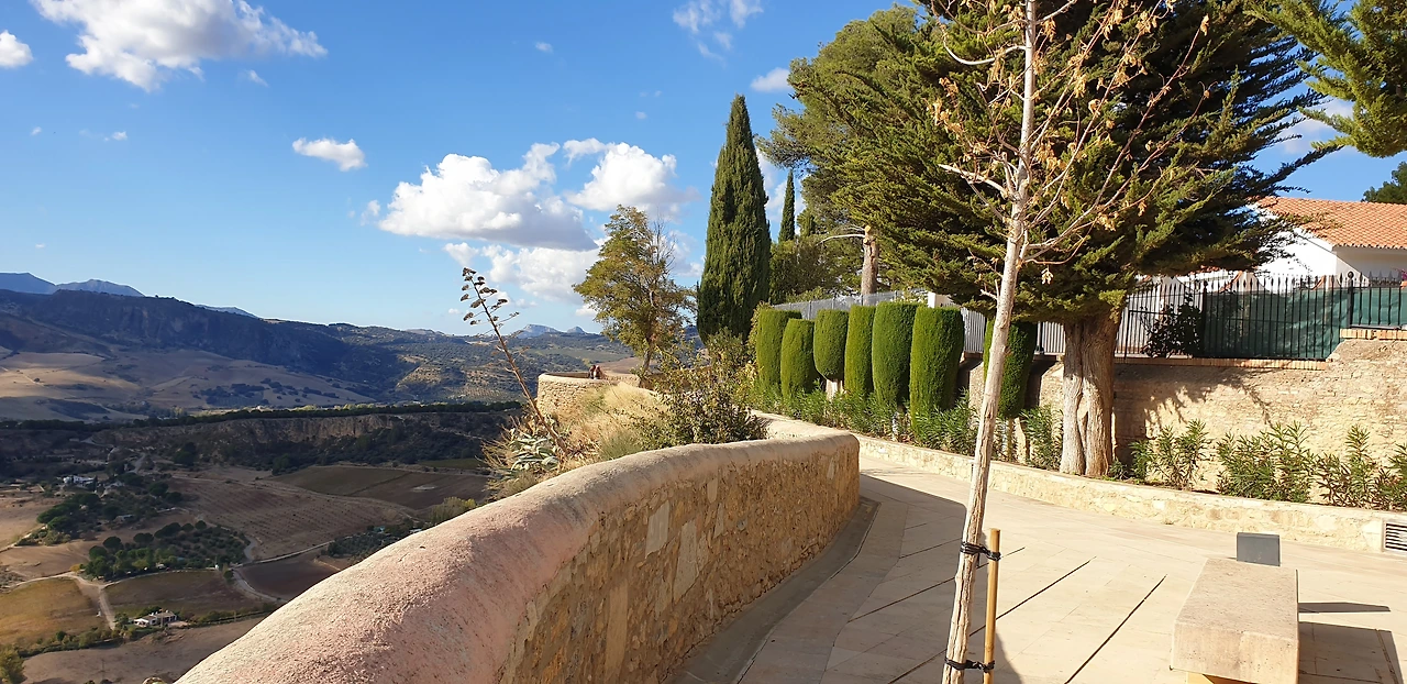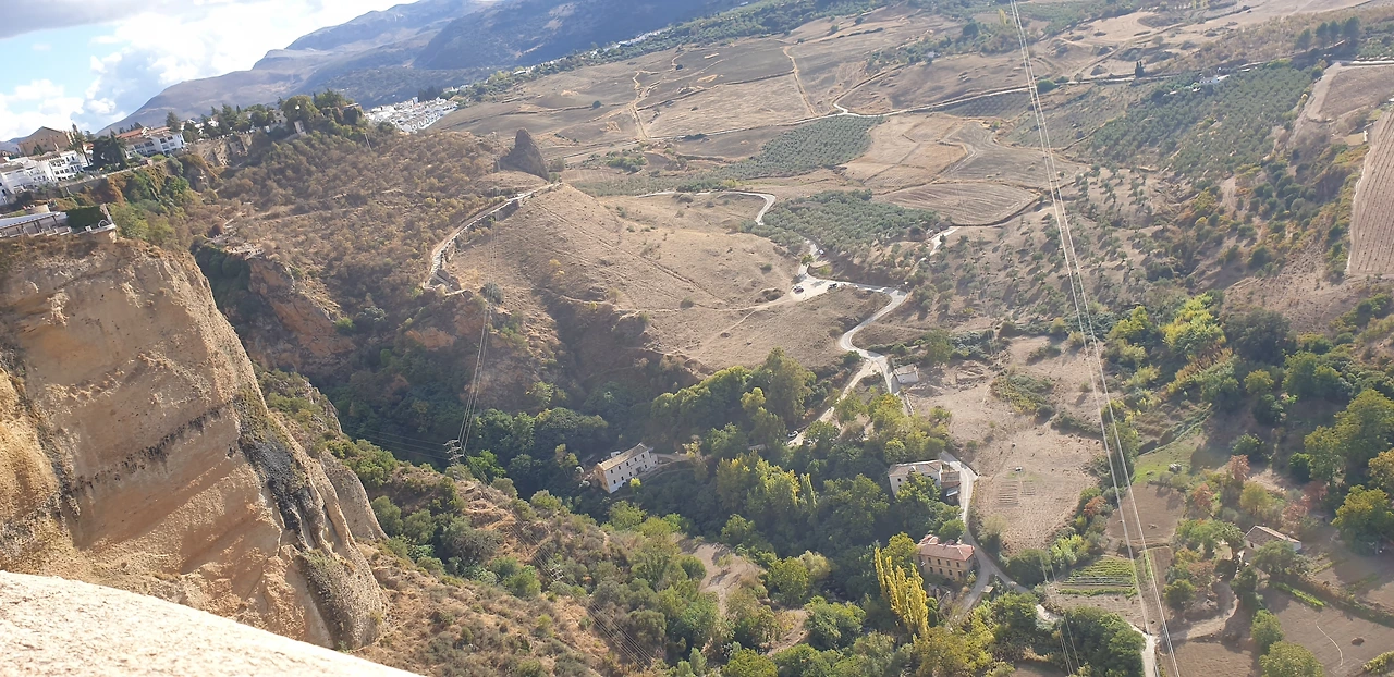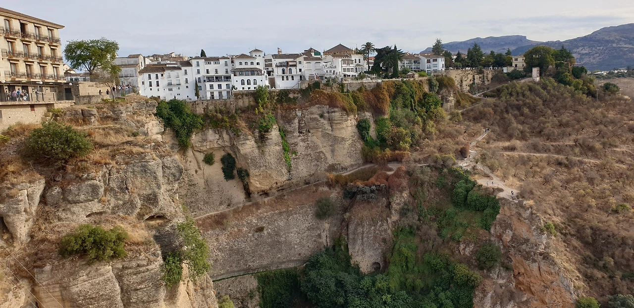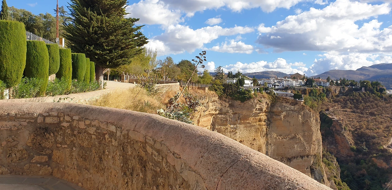 누에보 다리나 올드 타운이나 블로그에서 많이 본 풍경들이었는데 , 사흘째 되는 마지막 날, 도마를 사러 나갔다가 계곡을 바라보는 테라스 산책길을 가게 되었다. 난 여기가 너무너무 좋았다. 무감동맨인 남편도 연신 여기 풍경은 정말 비현실적이라고 얘기할 정도다. 절벽 아래 풍경과 절벽 위 산책로 모두 다 환상적이다. 산책로를 따라 단독주택들이 늘어서 있는데, 너무 맘에 들어서, 나 이 집 사달라고 남편에게 얘기했더니 아무 대답이 없다. 너무 터무니 없어서 일까, 아니면 속으로 돈계산 하고 있었을까? 아무려나 나 혼자 이 집을 사면 정원에서 산책로로 통하는 쪽문을 내야지 하고 상상의 나래를 폈다. 꿈꾸는 건 자유니까.