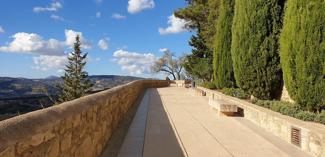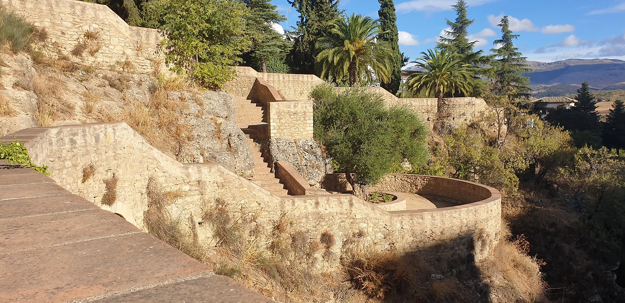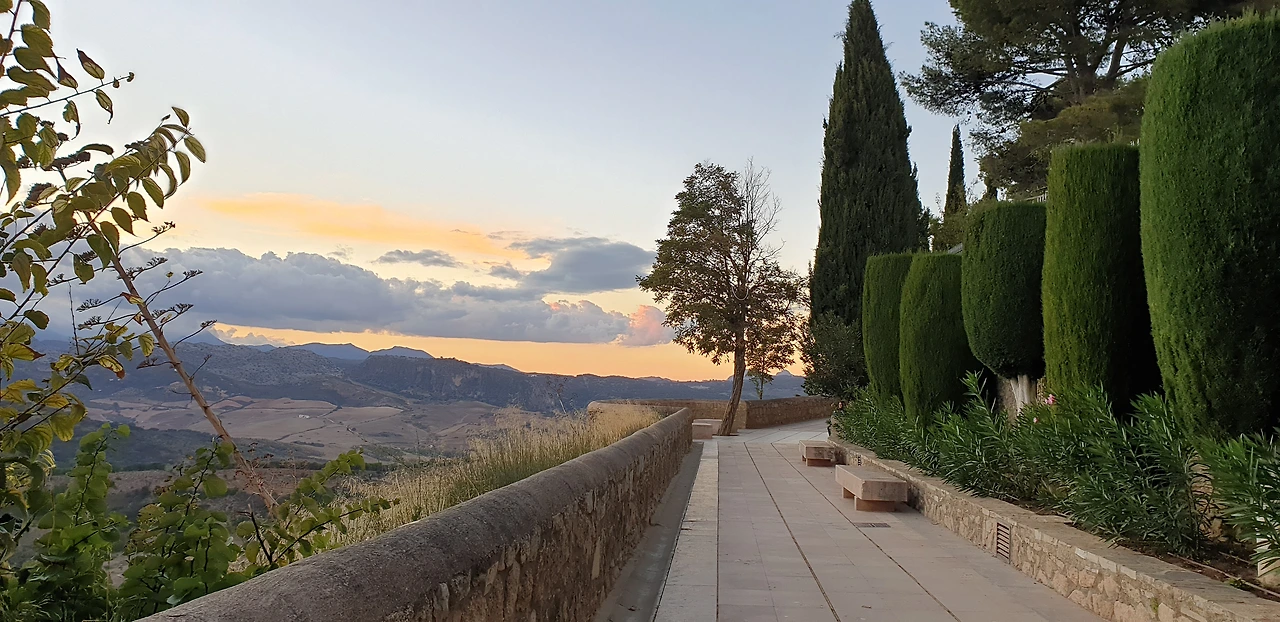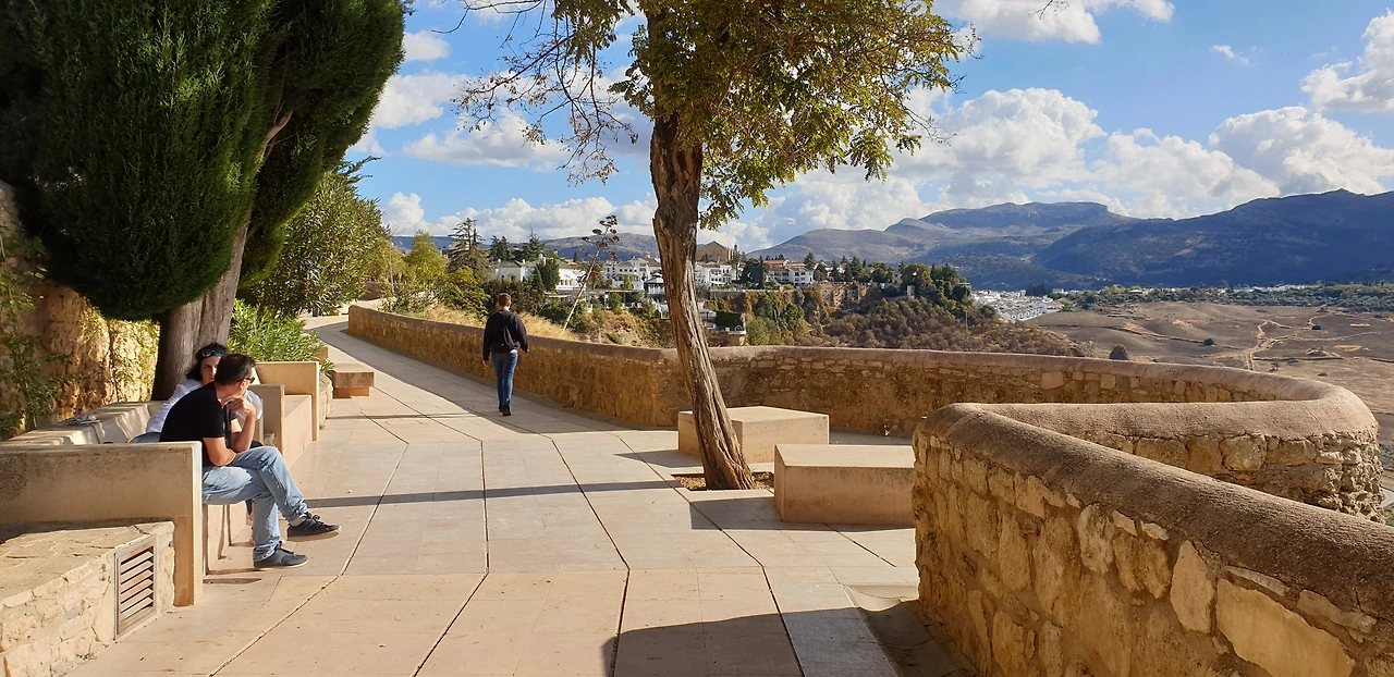 누에보 다리나 올드 타운이나 블로그에서 많이 본 풍경들이었는데 , 사흘째 되는 마지막 날, 도마를 사러 나갔다가 계곡을 바라보는 테라스 산책길을 가게 되었다. 난 여기가 너무너무 좋았다. 무감동맨인 남편도 연신 여기 풍경은 정말 비현실적이라고 얘기할 정도다. 절벽 아래 풍경과 절벽 위 산책로 모두 다 환상적이다. 산책로를 따라 단독주택들이 늘어서 있는데, 너무 맘에 들어서, 나 이 집 사달라고 남편에게 얘기했더니 아무 대답이 없다. 너무 터무니 없어서 일까, 아니면 속으로 돈계산 하고 있었을까? 아무려나 나 혼자 이 집을 사면 정원에서 산책로로 통하는 쪽문을 내야지 하고 상상의 나래를 폈다. 꿈꾸는 건 자유니까.