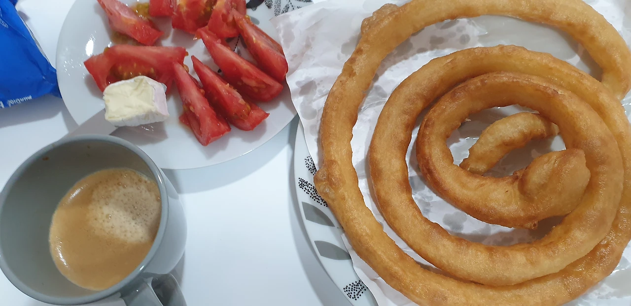 숙소 근처에서 관광용이 아닌 현지인들이 가는 츄로스집을 찾아서 먹으며 기다리기로 했다. 론다에 츄로스가 유명하다는 말을 들었는데, 이집에서 현지인들이 츄로스를 아침으로 먹는다고 한다. 그런데 찾아가 보니 츄로스가 없다고 한다. 오늘은 끝났는데 내일 아침 7시에 오란다. 할아버지 혼자 하는 bar 같은 곳으로 맥주 같은걸 파는 집이다. 밖에 있는 테이블에 앉아도 되냐고 하니 얼마든지 그러라고 하는데, 이거 다 눈치로 소통하는거다. 우린 영어 로, 할아버지는 스페인어로.