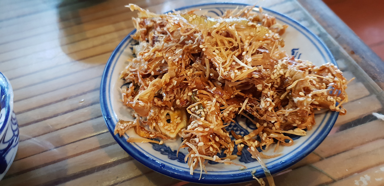 잭프루트튀김이라는데, 잭프루트라는 과일을 말려서 튀겨서 조린것같다. 양념은 꼭 우리 오징어채조림 같은 달달 짭짤한 맛.