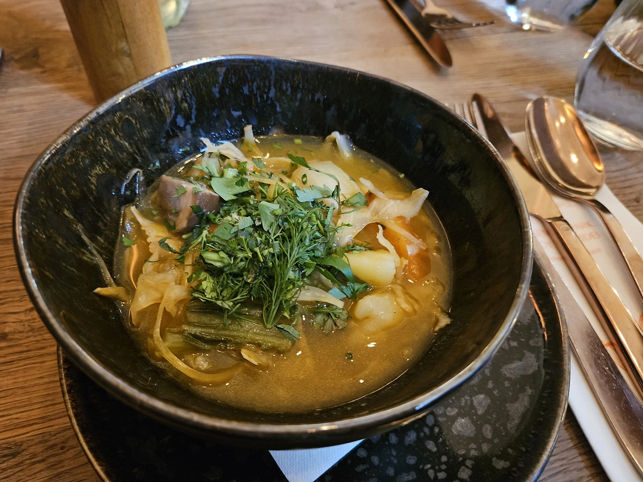 오데온광장에서 대성당을 보니 전에 왔을 때 공사로 바뀐 궁전의 입구를 못 찾아 헤매던 생각이 났다. 궁전입구를 지나 걷다가 한 레스토랑의 오늘의 메뉴가 내걸린 걸 보고 괜찮아 보여서 여기서 점심을 먹기로 했다. 수프와 뇨끼로 구성된 메뉴였는데, 수프가 아주 맛있다. 각종 채소와 허브로 맛을 낸 맑은 수프다. 뇨끼는 그저 그런 맛, 뇨끼가 쫄깃한 식감이었으면 더 좋을 번했다. 치즈맛이 진해서 좀 느끼했다. 아까는 해가 반짝 났었는데, 점심을 먹는 동안 소나기가 지나갔다.
