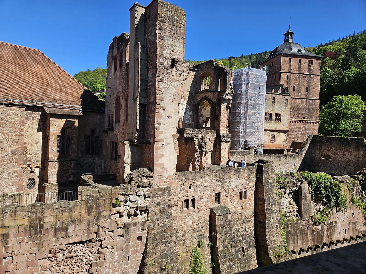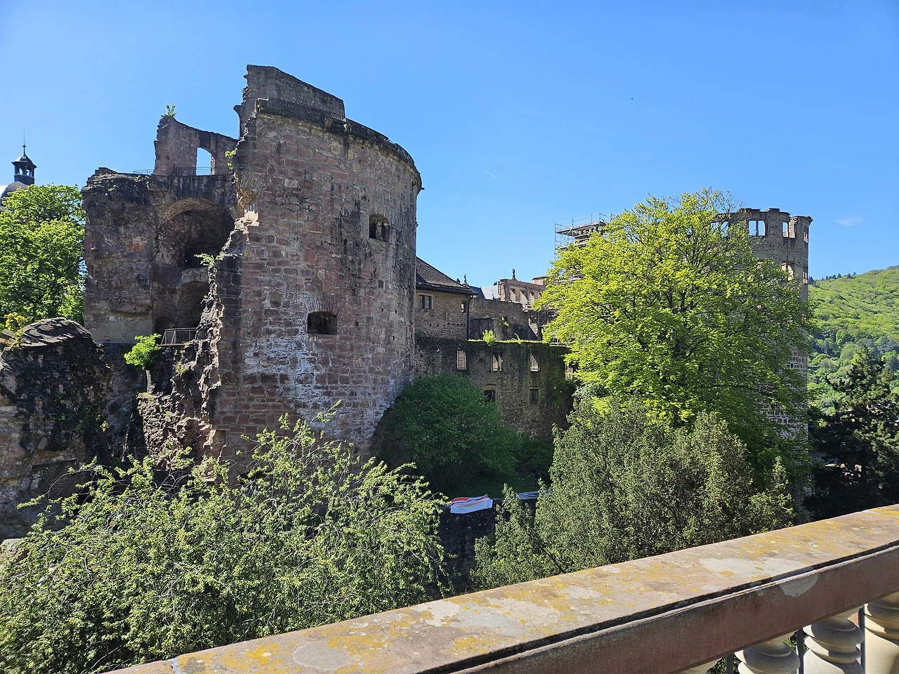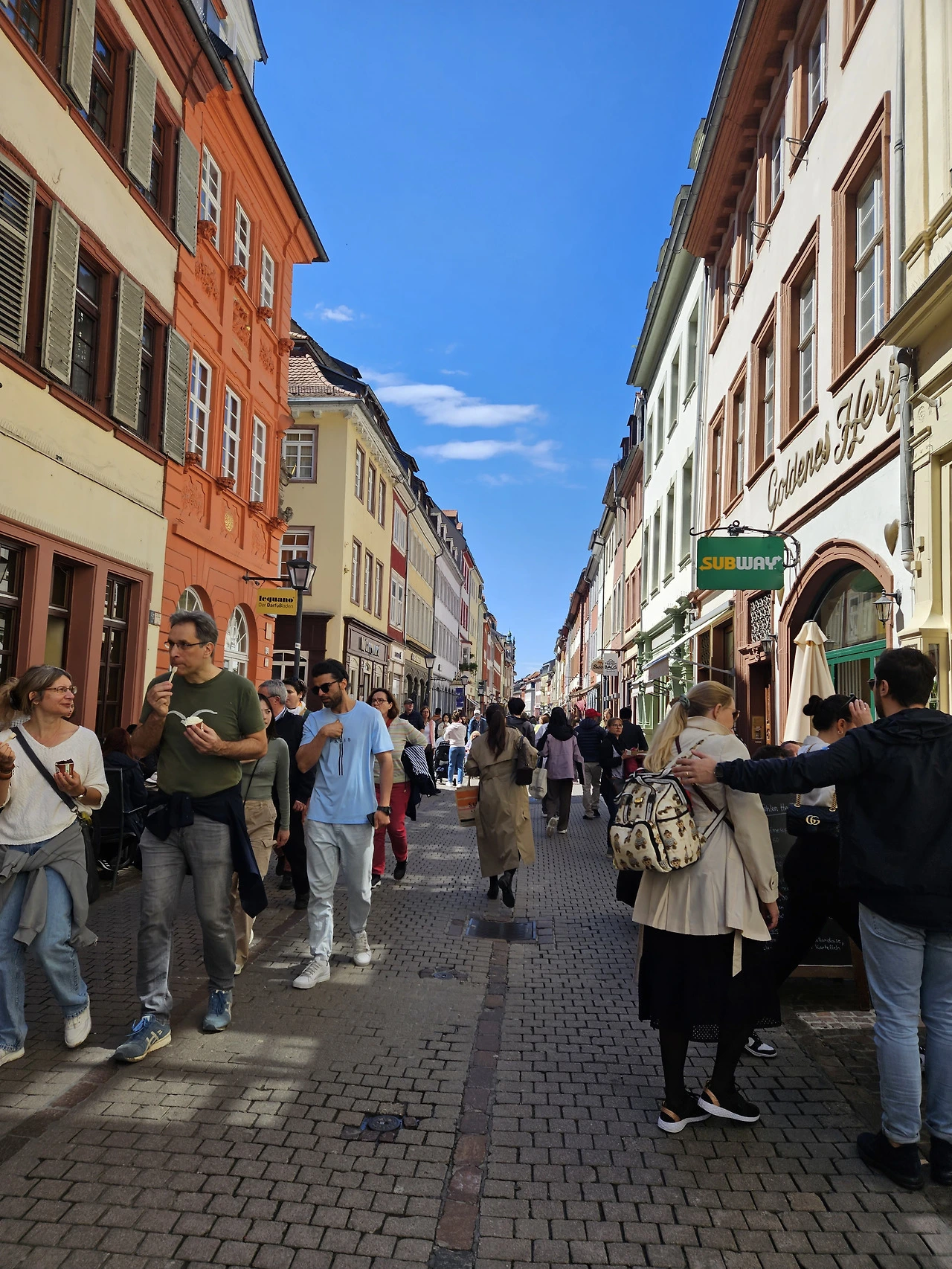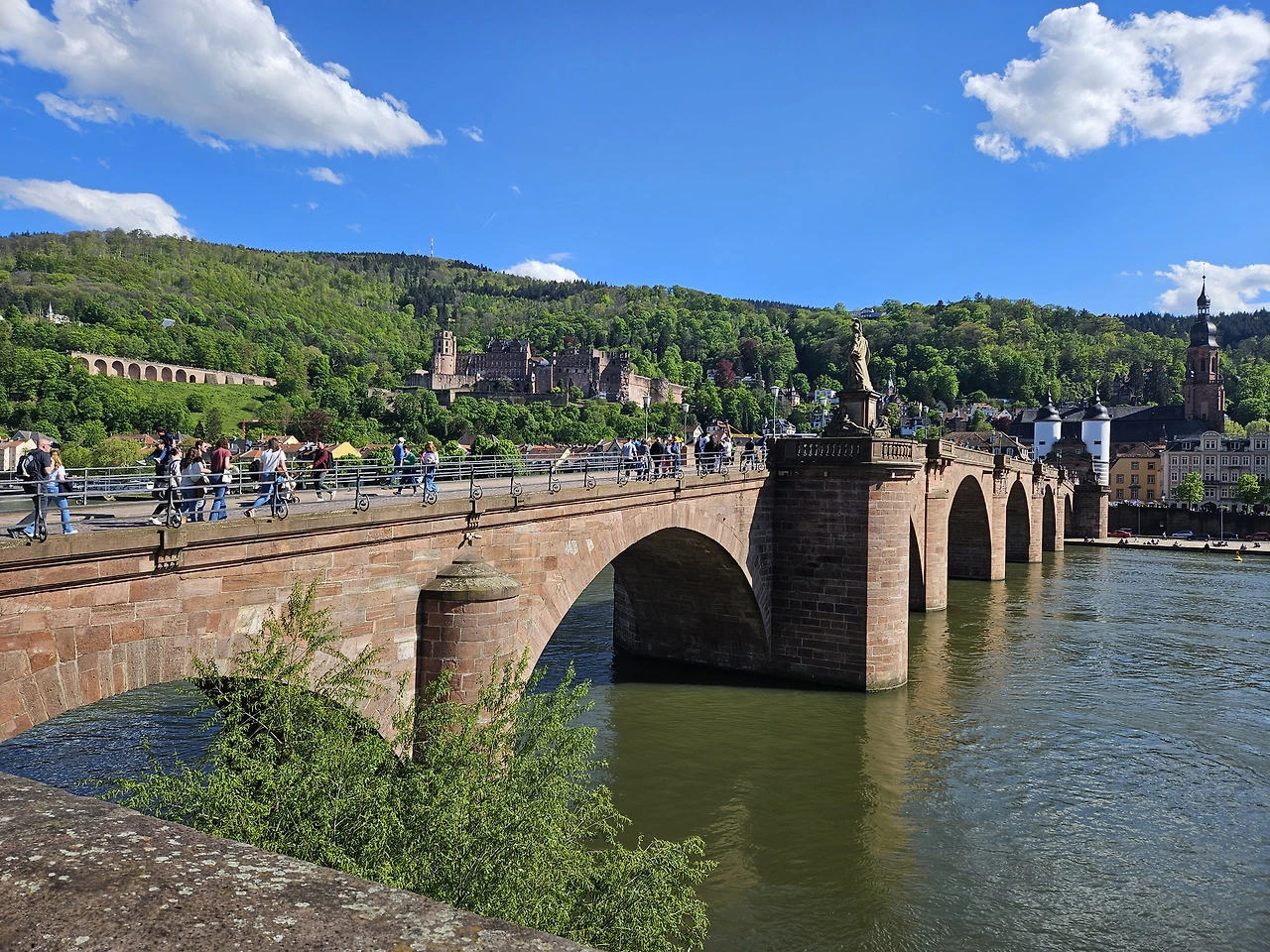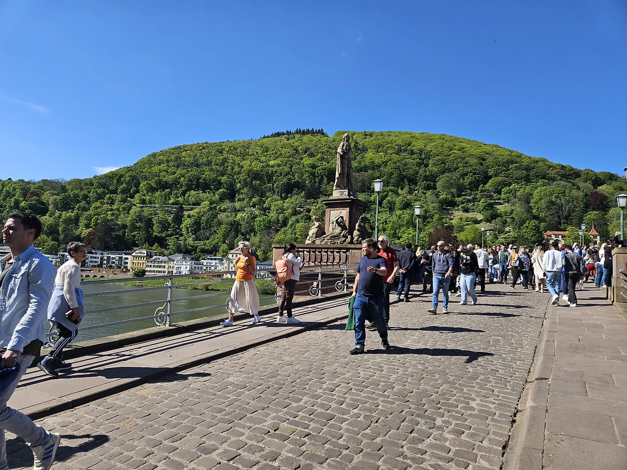 숙소가 있는 Waldbrunn이라는 작은 시골 마을에서 하이델베르크 성까지는 50분 거리이다. 하이델베르크로 가는 길은 강 따라 양쪽 기슭으로 집들이 죽 늘어서 있어 아름답다. 강에는 유람선도 있고 화물을 실은 기다란 배도 떠 있다. 하이델베르크에 도착해 P12이라는 주차장에 주차했다. 토요일이라 주차장이 만차로 언덕길에 골목에서 기다리고 있다가 한 대 나오면 한 대 들어갈 수 있다. 그런데 생각보다는 바로 들어갈 수 있었다. 주차장이 언덕 위에 있어서 아래로 내려오면 그 건물의 1층이 바로 푸니쿨라 탑승장이다.