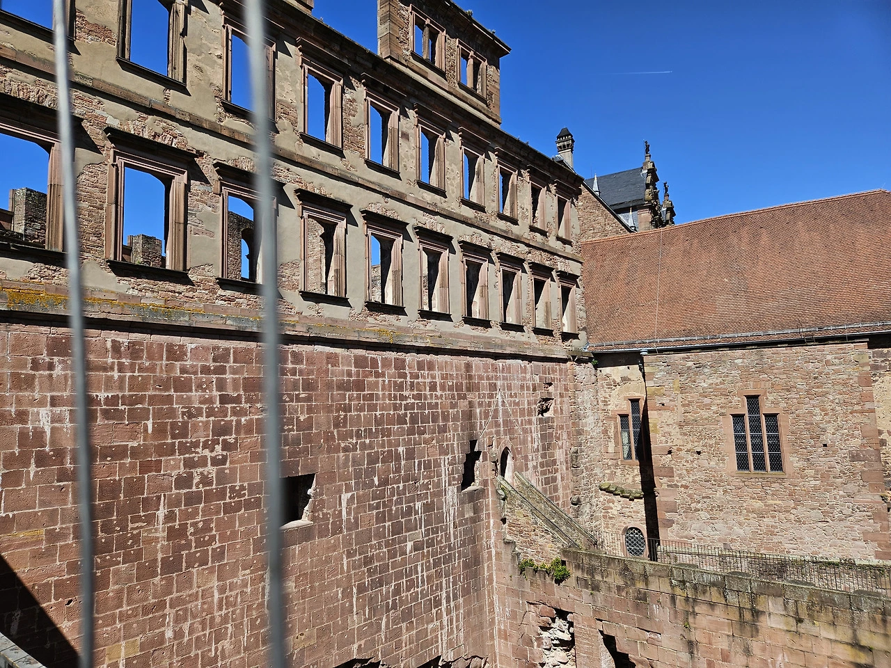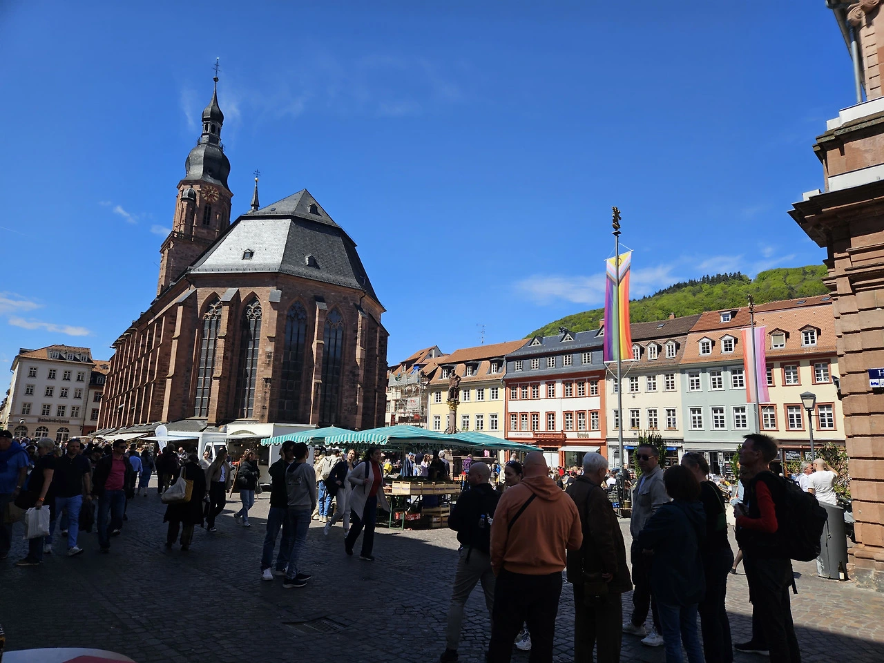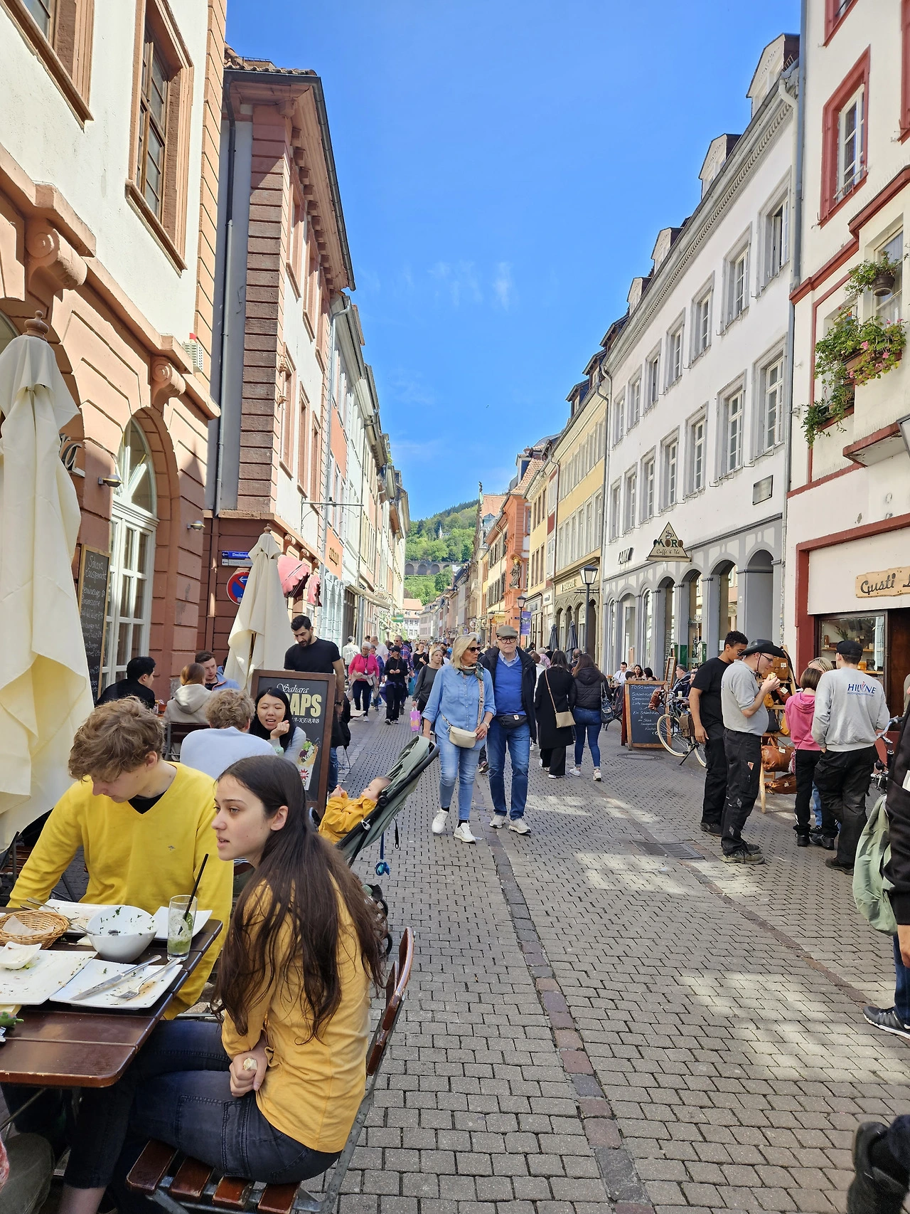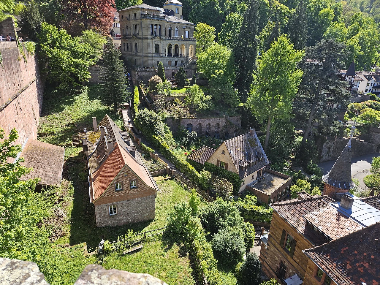 숙소가 있는 Waldbrunn이라는 작은 시골 마을에서 하이델베르크 성까지는 50분 거리이다. 하이델베르크로 가는 길은 강 따라 양쪽 기슭으로 집들이 죽 늘어서 있어 아름답다. 강에는 유람선도 있고 화물을 실은 기다란 배도 떠 있다. 하이델베르크에 도착해 P12이라는 주차장에 주차했다. 토요일이라 주차장이 만차로 언덕길에 골목에서 기다리고 있다가 한 대 나오면 한 대 들어갈 수 있다. 그런데 생각보다는 바로 들어갈 수 있었다. 주차장이 언덕 위에 있어서 아래로 내려오면 그 건물의 1층이 바로 푸니쿨라 탑승장이다.
