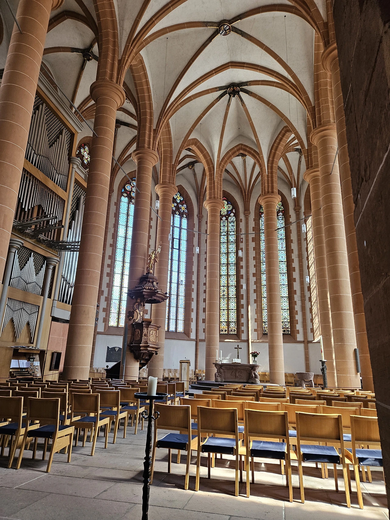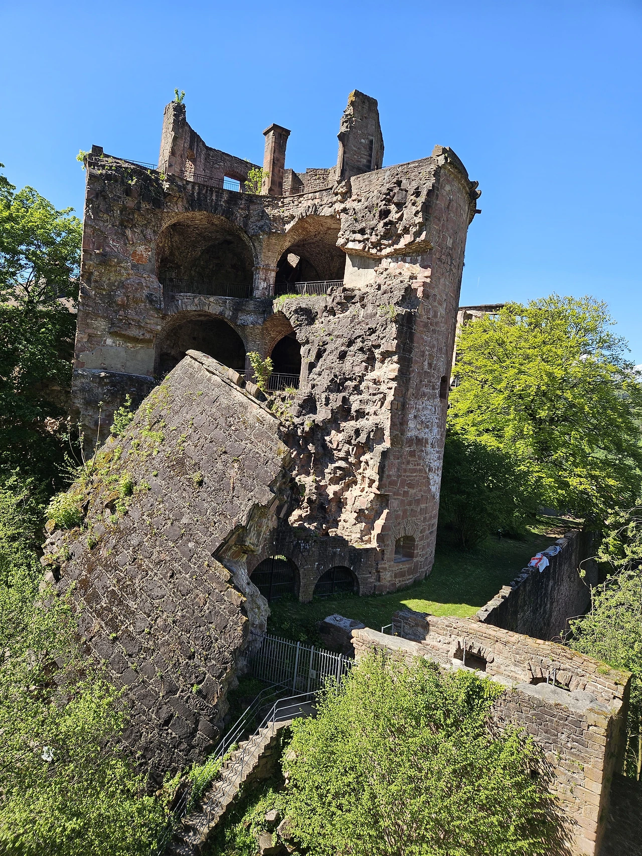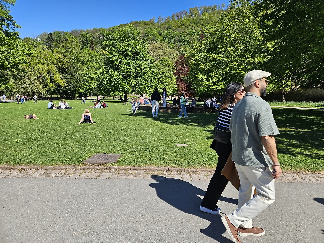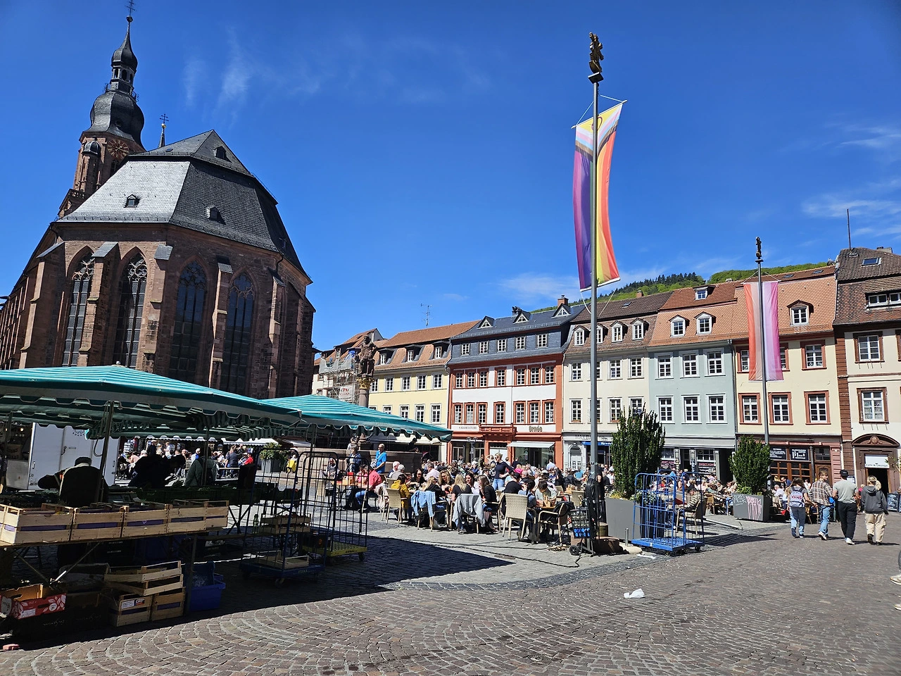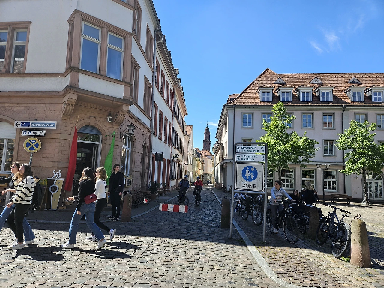 숙소가 있는 Waldbrunn이라는 작은 시골 마을에서 하이델베르크 성까지는 50분 거리이다. 하이델베르크로 가는 길은 강 따라 양쪽 기슭으로 집들이 죽 늘어서 있어 아름답다. 강에는 유람선도 있고 화물을 실은 기다란 배도 떠 있다. 하이델베르크에 도착해 P12이라는 주차장에 주차했다. 토요일이라 주차장이 만차로 언덕길에 골목에서 기다리고 있다가 한 대 나오면 한 대 들어갈 수 있다. 그런데 생각보다는 바로 들어갈 수 있었다. 주차장이 언덕 위에 있어서 아래로 내려오면 그 건물의 1층이 바로 푸니쿨라 탑승장이다.