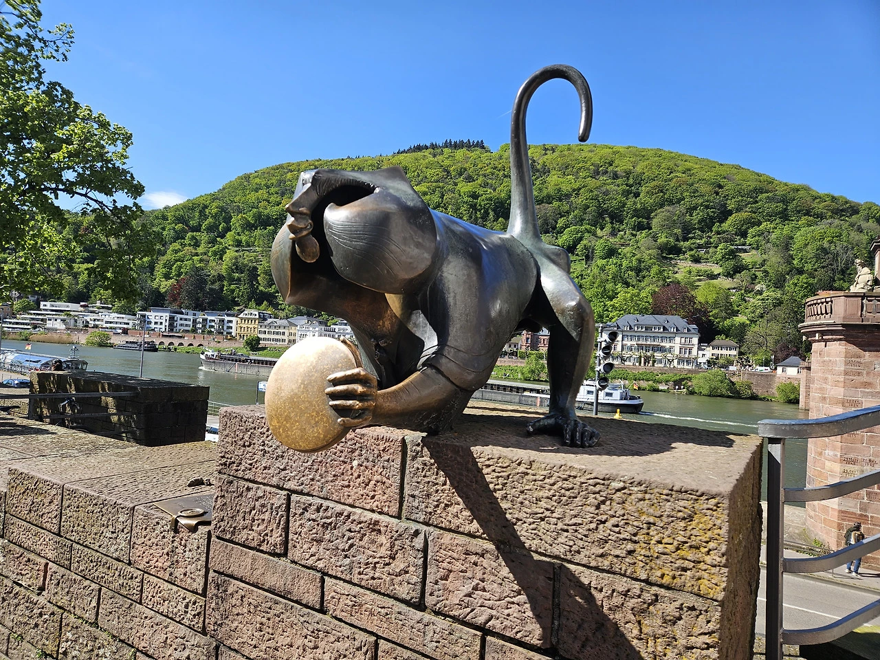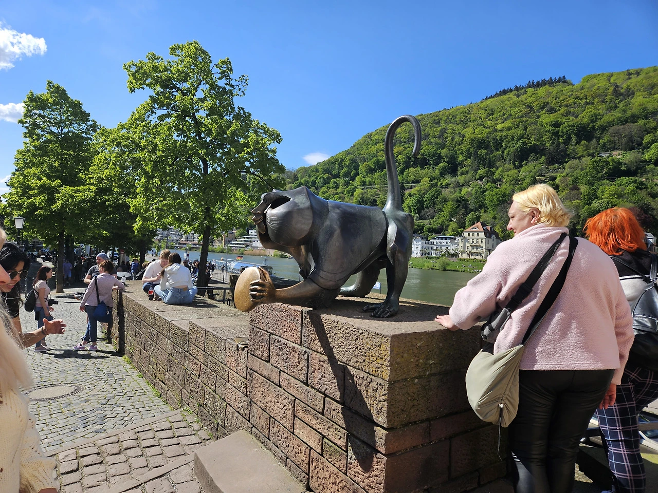 대성당 뒤쪽 다리로 가니 거기엔 사람이 더 많다. 다리 입구에 고양이 조각이 있는데 스 머리 안에 머리를 넣고 사진을 찍고 있다.