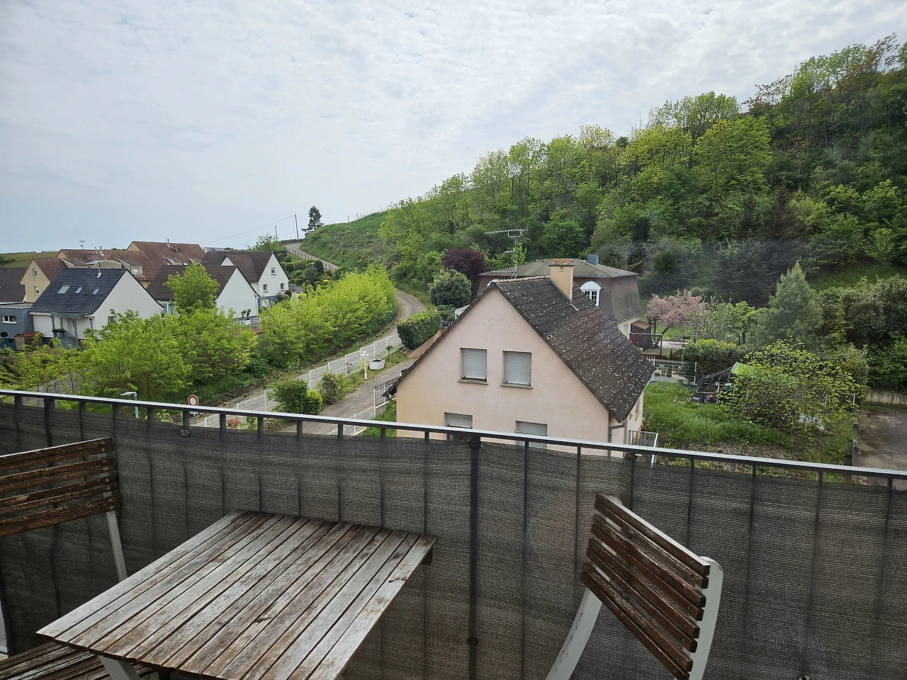 이 숙소는 도시 맨 끝에 위치한 빌라인데 거실 창으로 보이는 포도밭 언덕 경치가 멋지다.