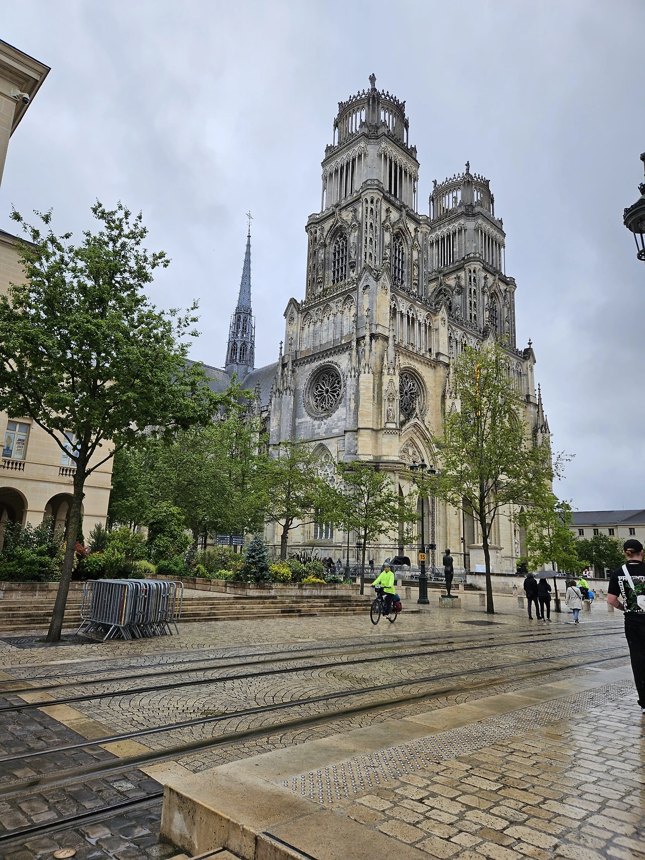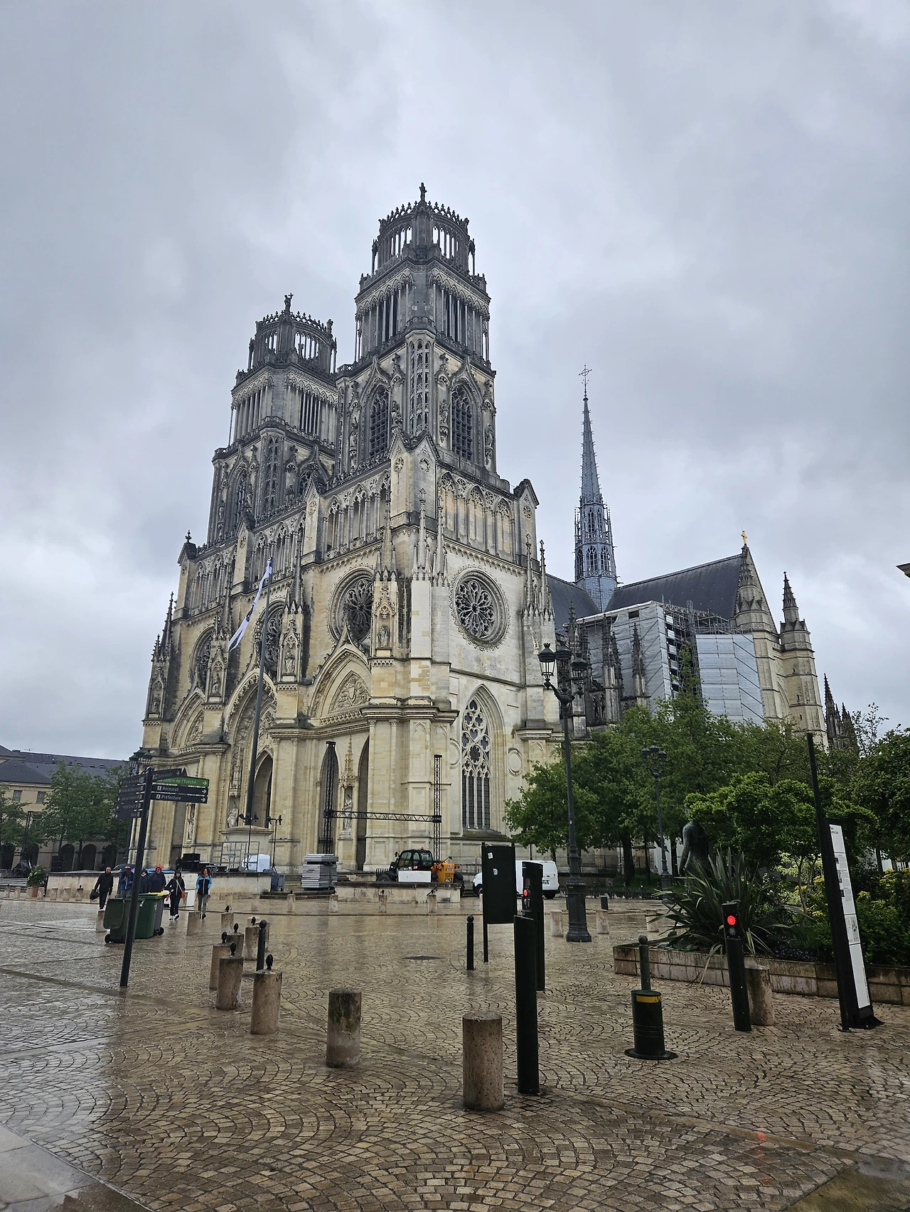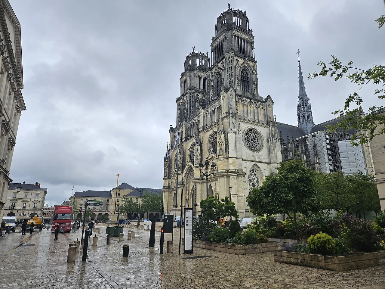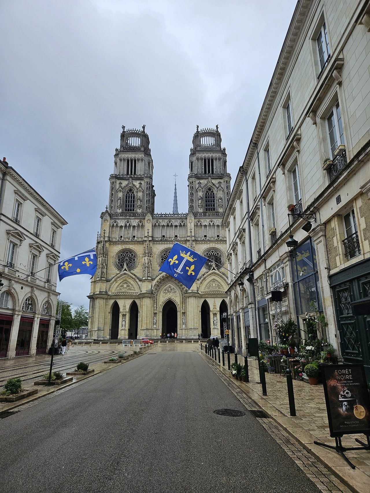 별 기대 없이 대성당 쪽으로 방향을 틀었는데 멀리 보이는 오를레앙 대성당이 규모가 대단히 크고 화려하다. 가까이 갈수록 압도당하는 기분이다. 내부도 깃발들이 화려하게 장식되어 있어 더욱 화려하고 웅장해 보인다.