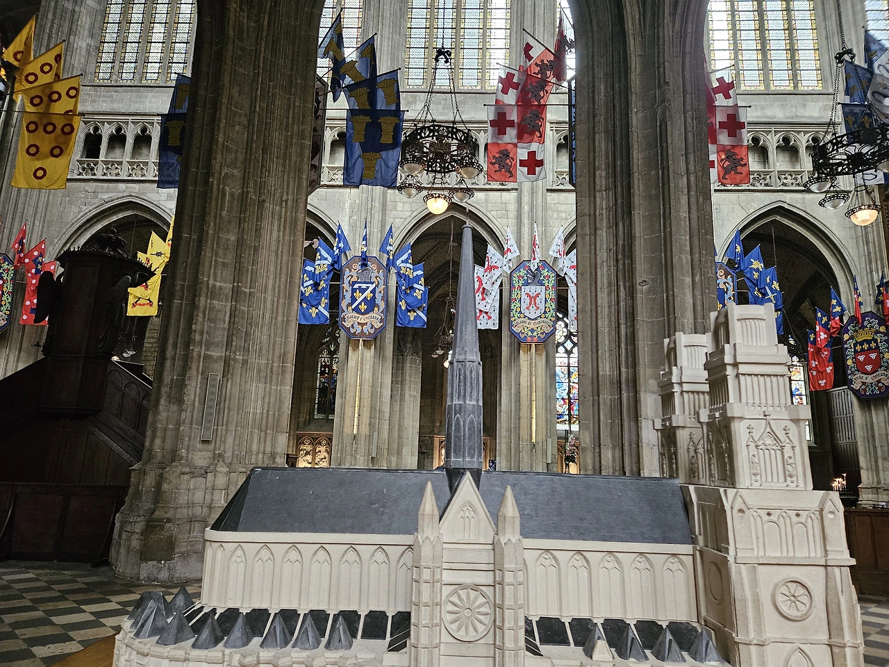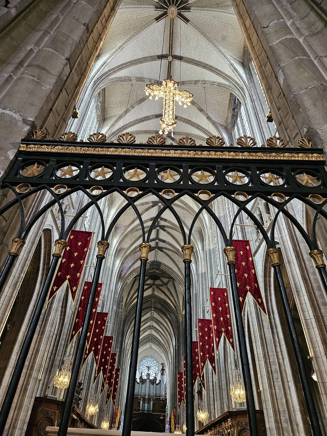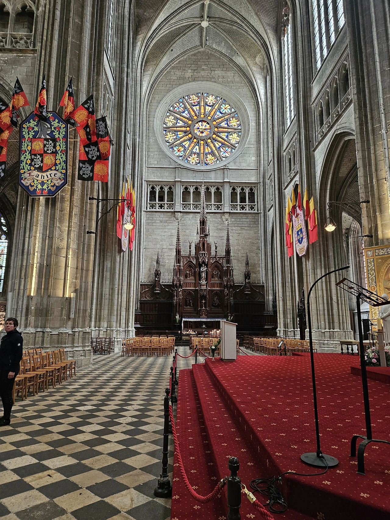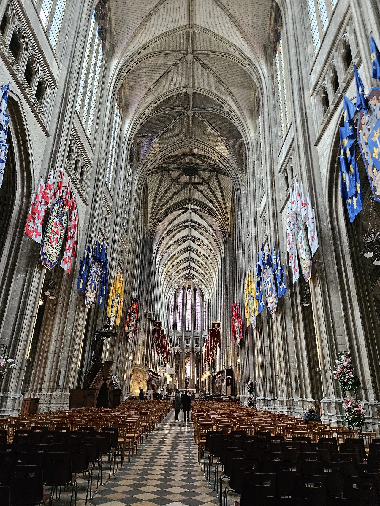 별 기대 없이 대성당 쪽으로 방향을 틀었는데 멀리 보이는 오를레앙 대성당이 규모가 대단히 크고 화려하다. 가까이 갈수록 압도당하는 기분이다. 내부도 깃발들이 화려하게 장식되어 있어 더욱 화려하고 웅장해 보인다.