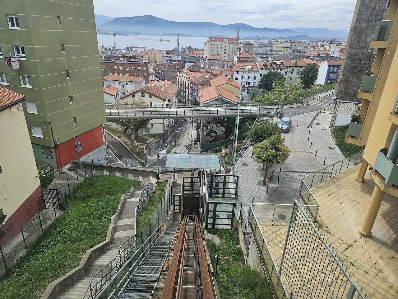 여기 푸니쿨라는 관광용이 아니고 높은 지대에 사는 주민들이 이용하는 편의시설이다. 에스컬레이터를 세 번 갈아타고 그 끝에 푸니쿨라가 있다. 꼭대기까지 올라가니 도시가 다 내려다보이고 바다도 보이지만 풍경이 그리 아름답지는 않다. 산탄데르에는 도시 곳곳에 에스컬레이터가 있다.