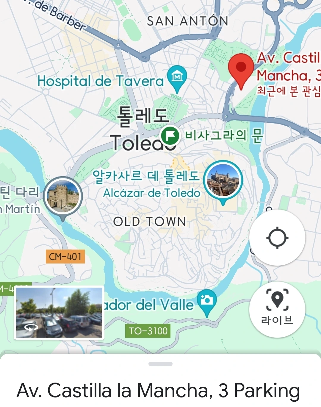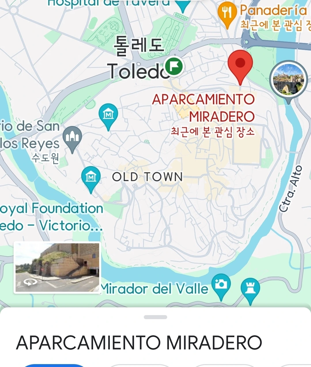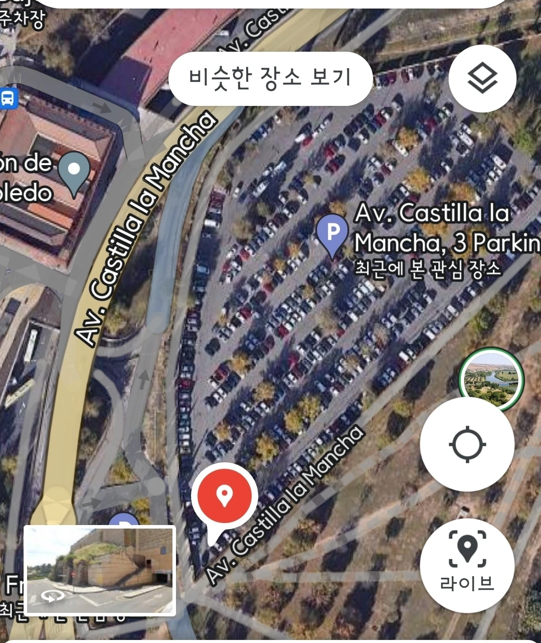 나도 자동차로 톨레도를 방문하려는 사람에게 추천한다. 실내는 아니지만 무료일 뿐 아니라 구시가지 접근성이 좋다. 매우 넓고 가로등도 곳곳에 있고 입구가 한 곳뿐이라 비교적 안전한 것 같다. 우리는 2박 3일을 그곳에 주차했는데 아무 일도 없었다.