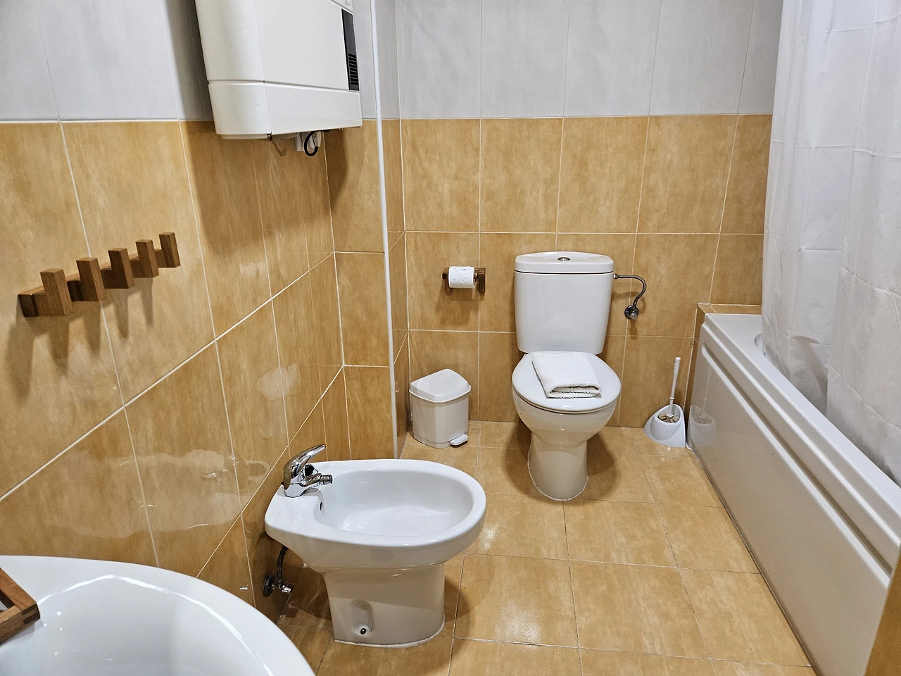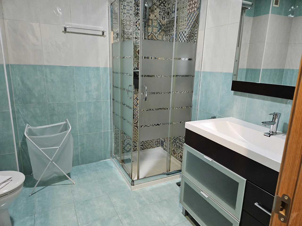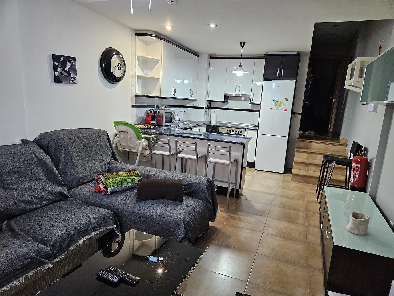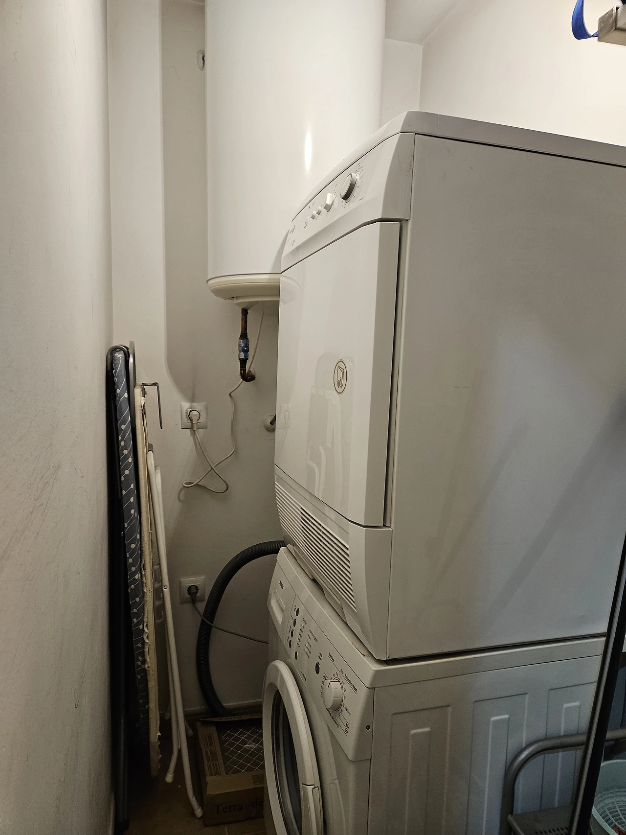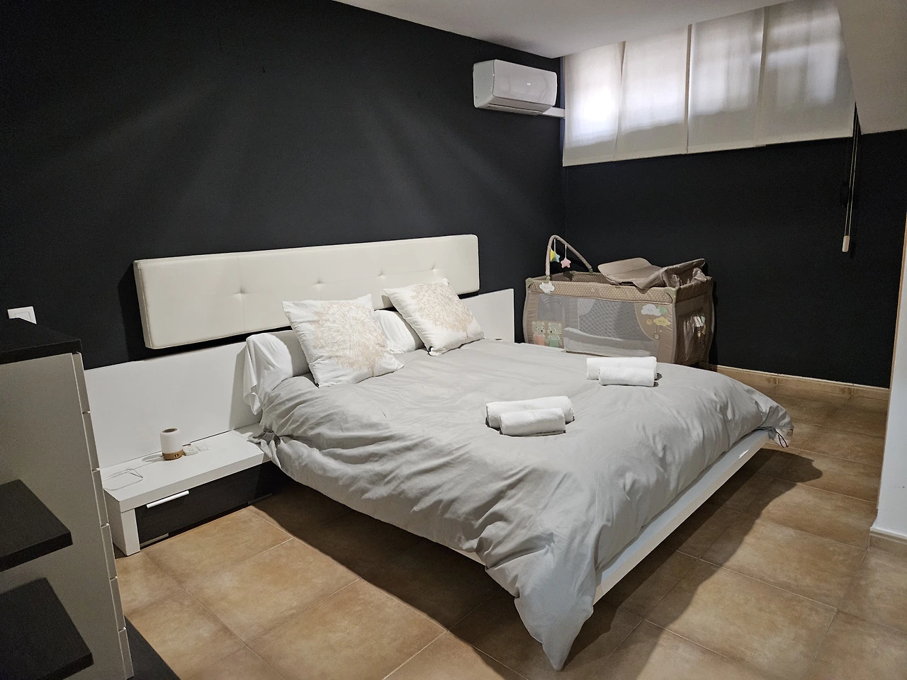 숙소는 1층인데, 반지하층에 침실과 욕실이 하나씩 더 있고, 세탁기와 건조기도 있다.