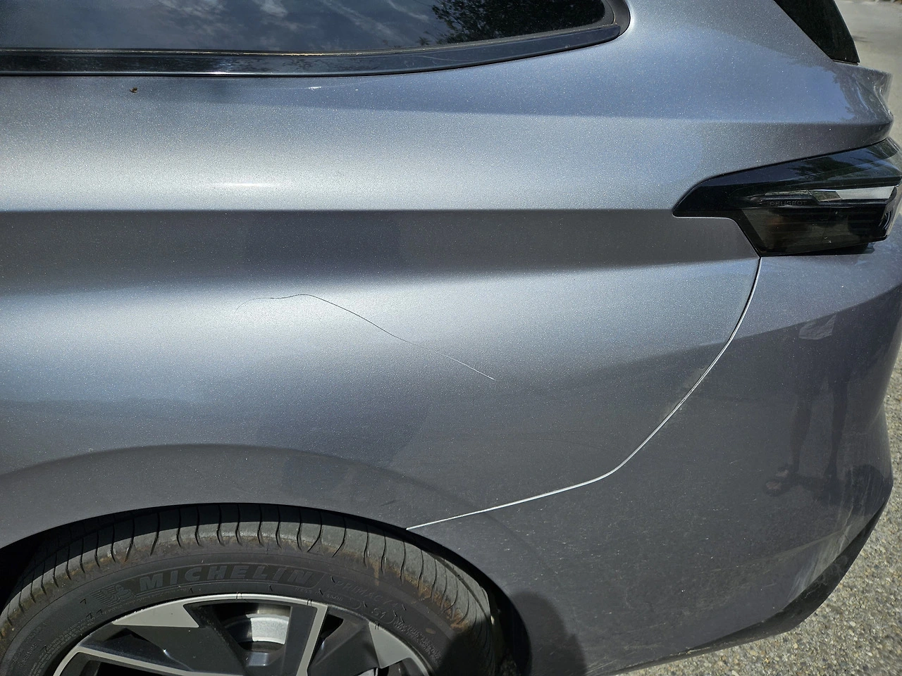 *** 쿠엥카에서 출발하려고 보니 누가 우리차 뒷쪽 옆구리를 긁어 놓았다.