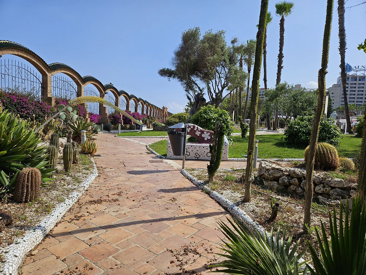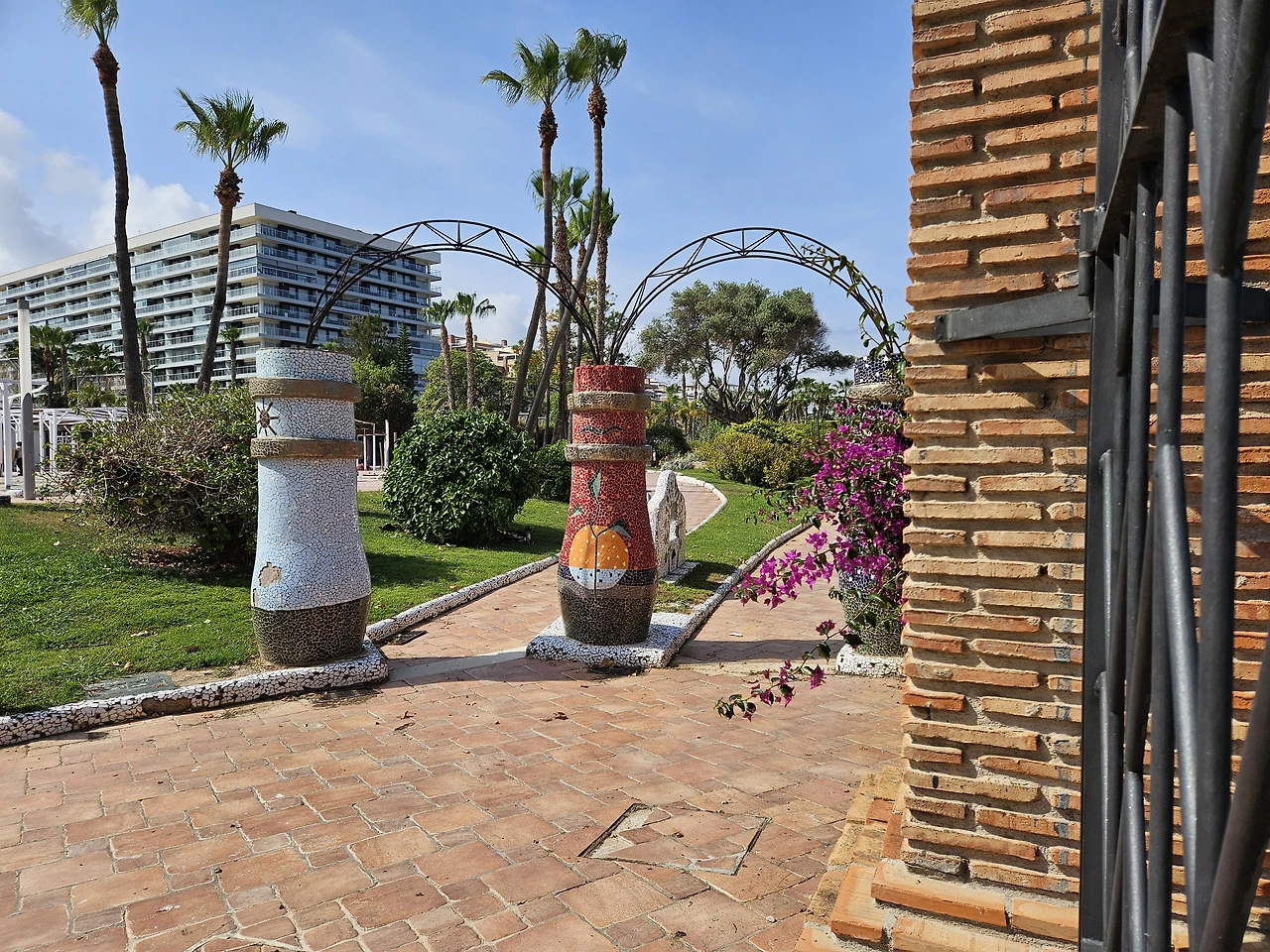 Marina d'Or는 해변에 있는 넓은 정원인데 여기도 일요일이라 문을 닫았다. 담장 너머로 어떤 곳인지 대강 구경할 수 있었다. 선인장 같은 걸 많이 심어 놓았고 가우디 풍으로 벤치나 아치등을 만들어 놓았다. 시내에도 가우디 콘셉트의 조형물들이 꽤 눈에 띈다.