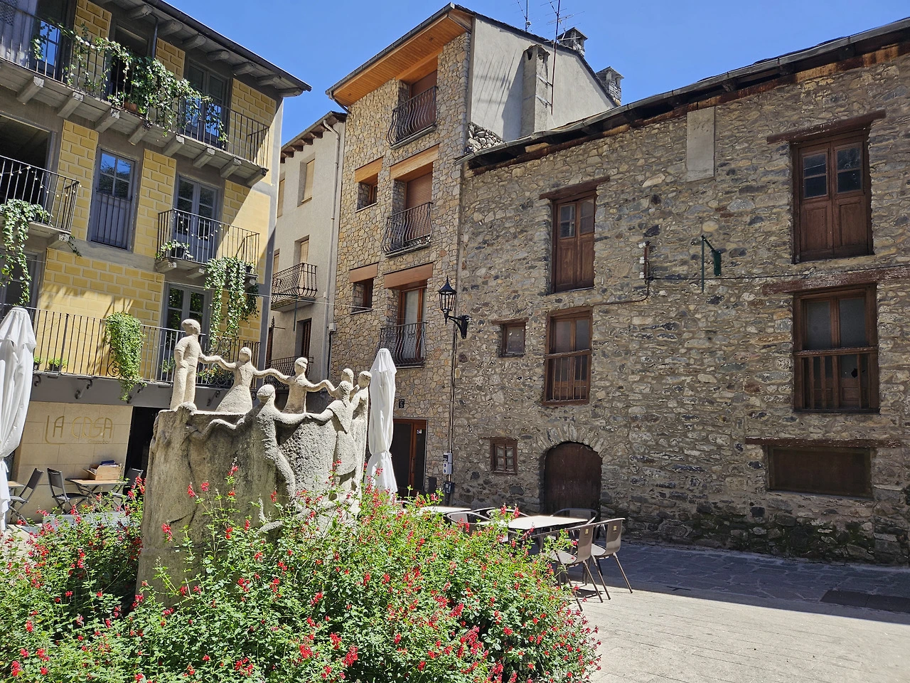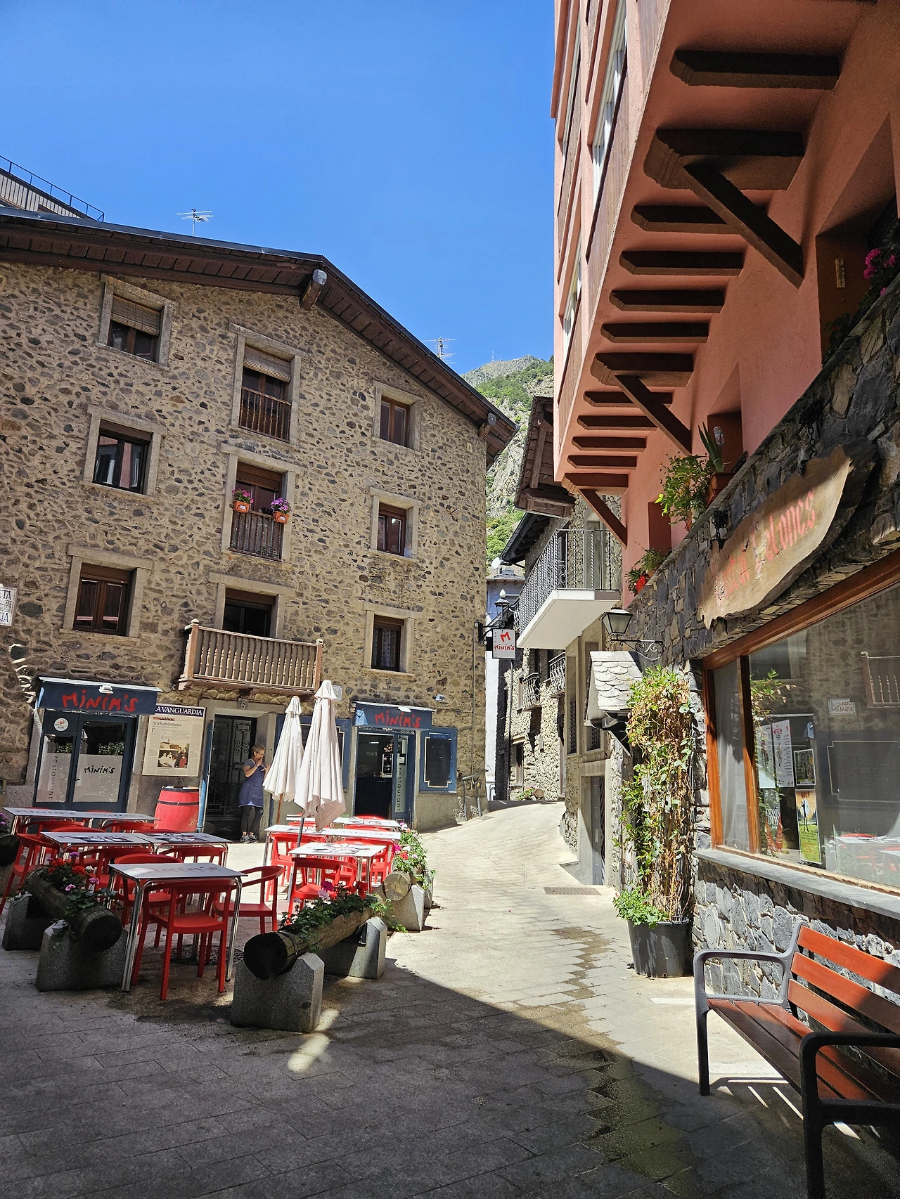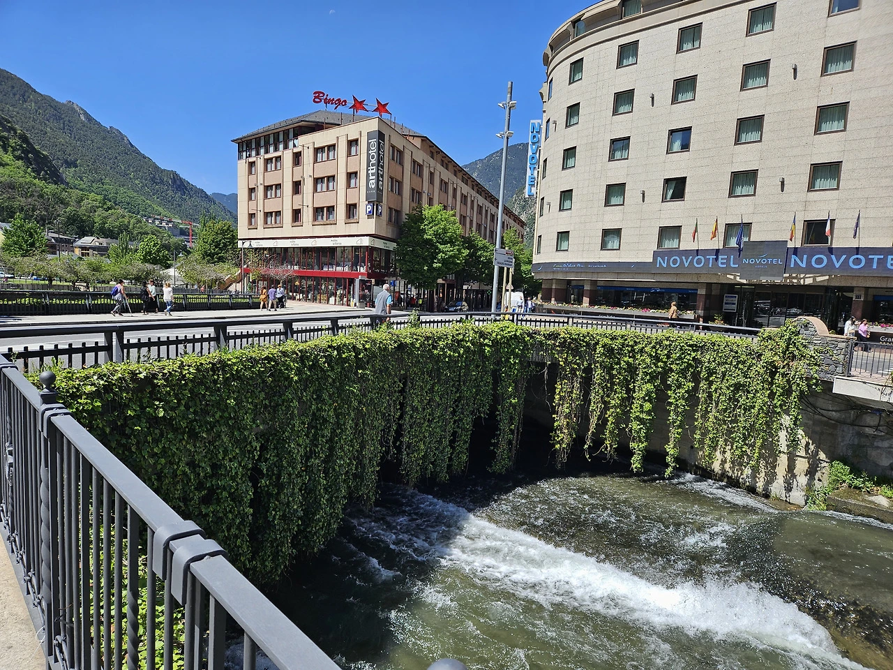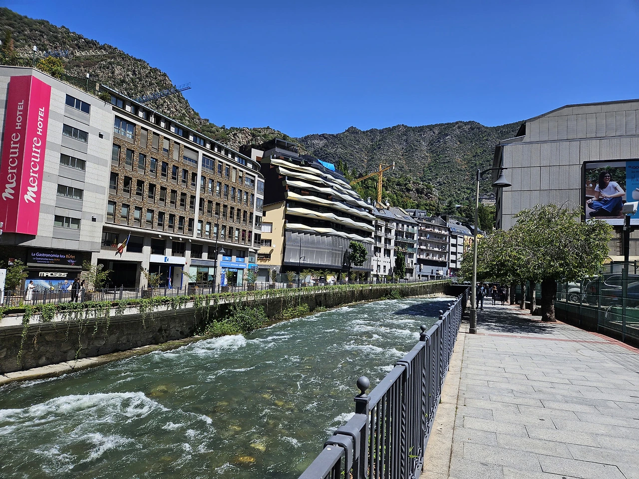 우리 숙소가 있는 Arinsal부터 안도라라베야까지 좁은 도로 양쪽으로는 깔끔하고 고급스러운 스키리조트들이 계속 이어진다. 산악지대라 집들은 다 양쪽 산기슭 따라 비탈에 지어져 있다. 좁은 계곡으로는 무서울 정도로 빠른 물살이 흘러내려간다.