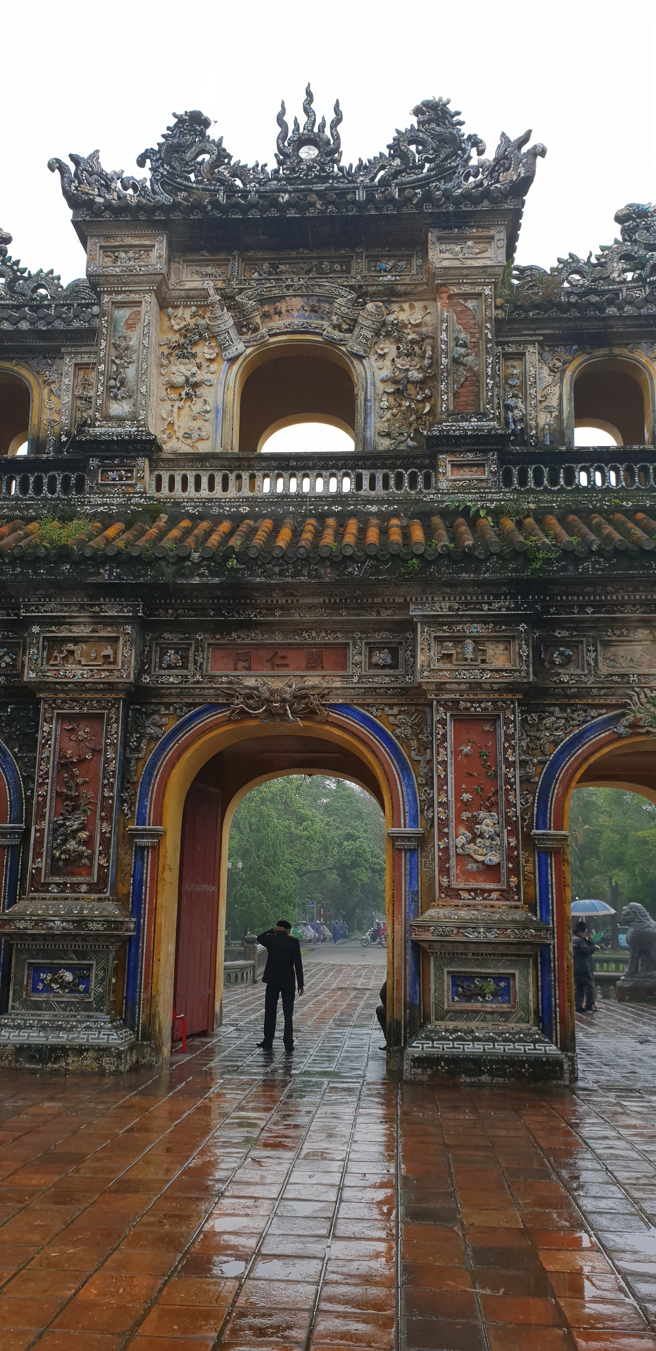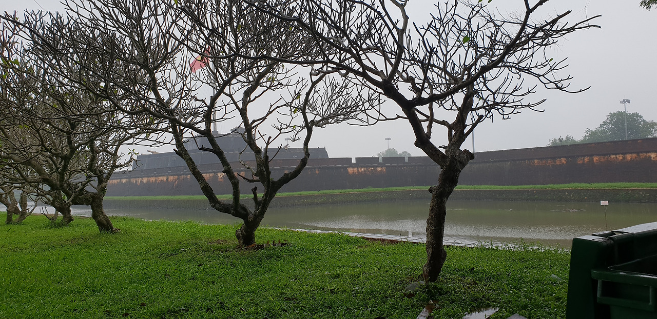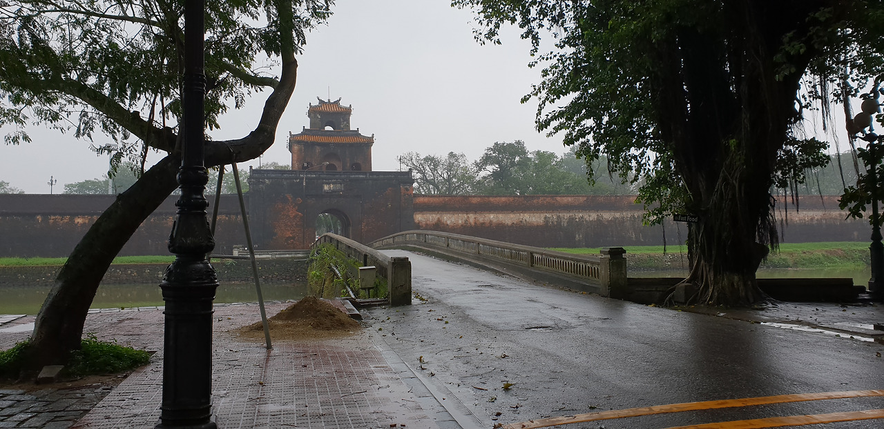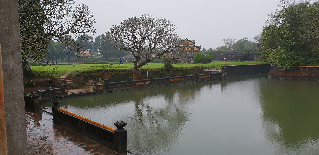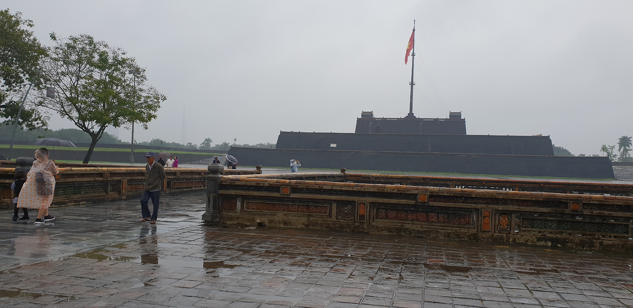 비는 계속 내리지만 황궁은 가 봐야겠기에 다리를 건너 황궁으로 향했다. 빗속에도 유람선이 운행을 하고 있다.