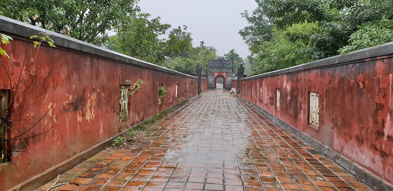 모퉁이를 도니 들어갔던 문이 멀리 보인다.