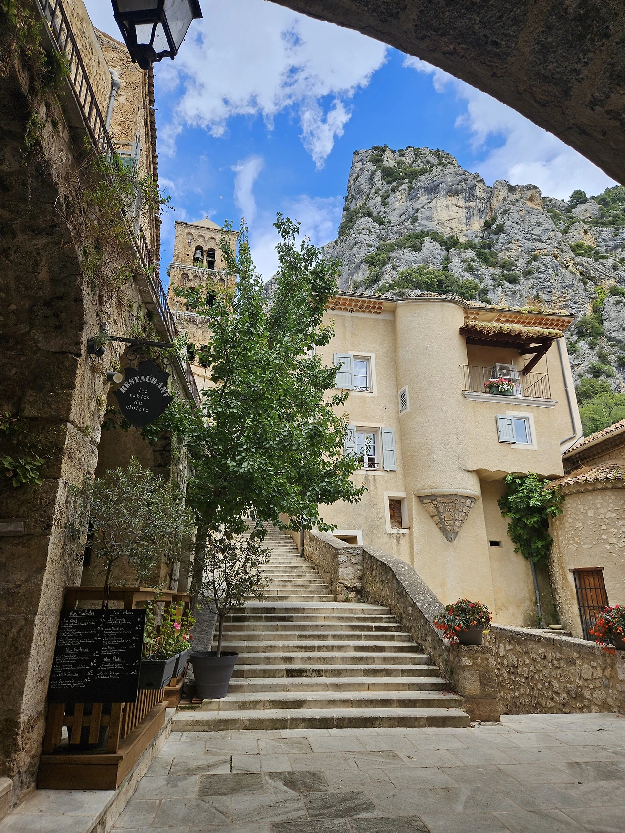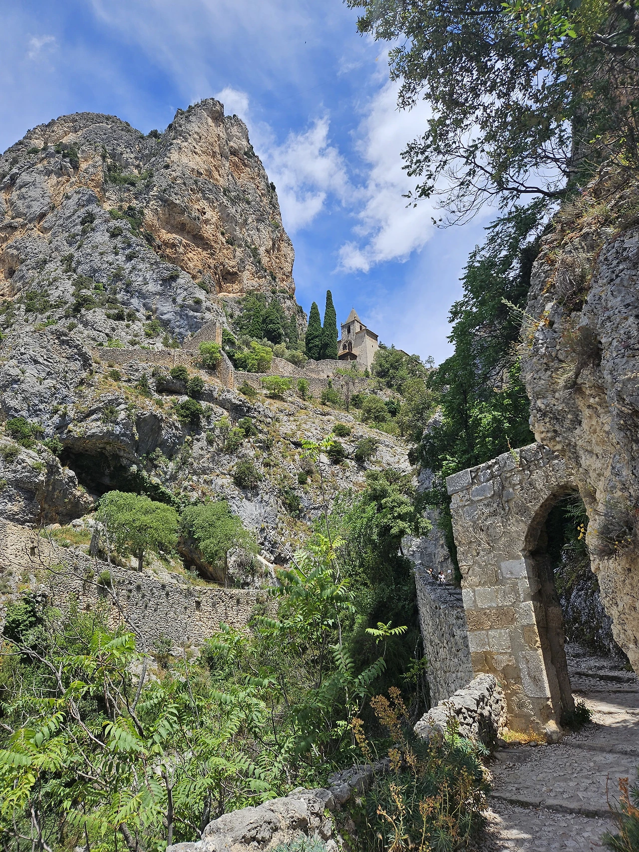 맨 위층에 댄 덕에 산 쪽으로 통하는 샛길이 있어 계단 중간으로 나갈 수 있다. 산 중턱에 보이는 노트르담 성당으로 오르는 길은 힘들다기보다 바닥이 미끄러워서 조심조심 가야 했다. 결국 한 번 사진 찍다가 돌에 미끄러져 팔꿈치를 돌벽에 긁어 피가 났다.