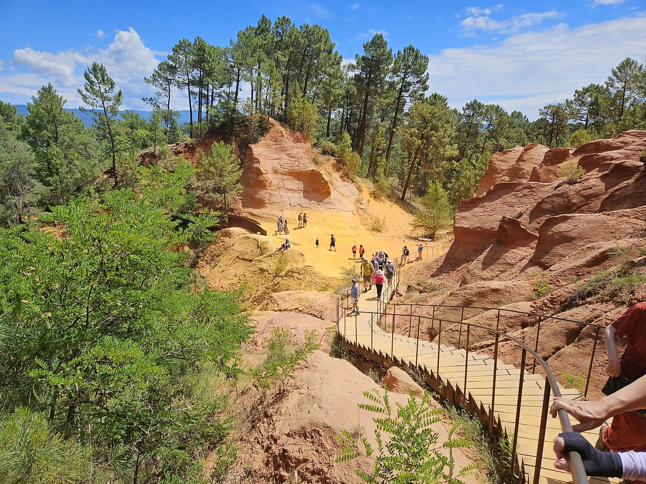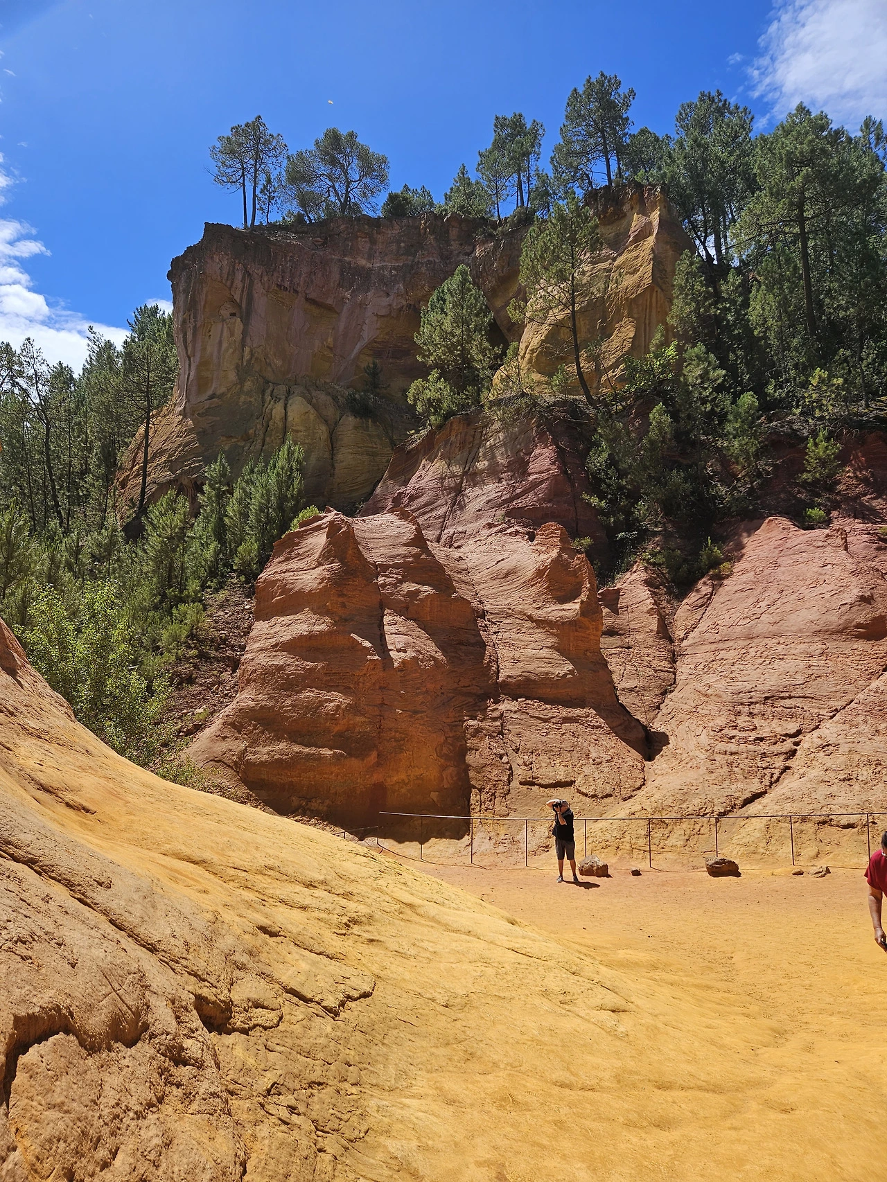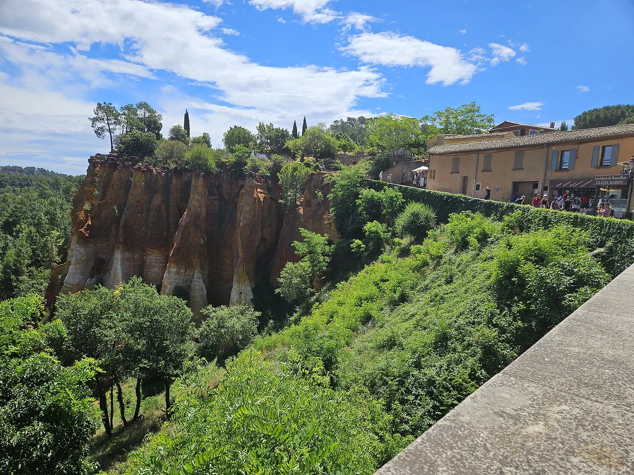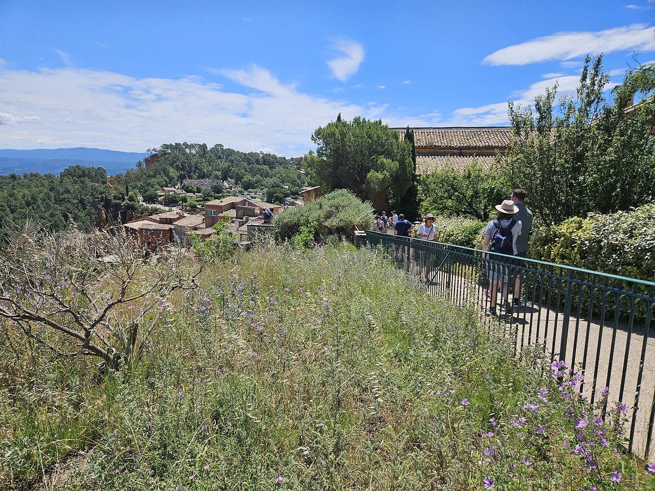 Ocre 자연공원은 황토로 이루어져 있는데 잘은 몰라도 그림물감의 Ocre색을 내는 원료인 것 같다. 공원입구 기념품점에서 물감을 팔고 있다. 티켓을 사서 올라가니 얼마 가지 않아서 예쁜 붉은 황토색 지대가 나온다. 미국 자이언캐년이 생각나는데, 그 규모로는 자이언 캐년의 방대함에 비할 수는 없다. 황토지대가 계속되는 건 아니고 그냥 산길을 트래킹 하는 거라 조금 가다가 돌아 나왔다. 세 사람 다 오르내리는 산길이 그리 반갑지는 않다.