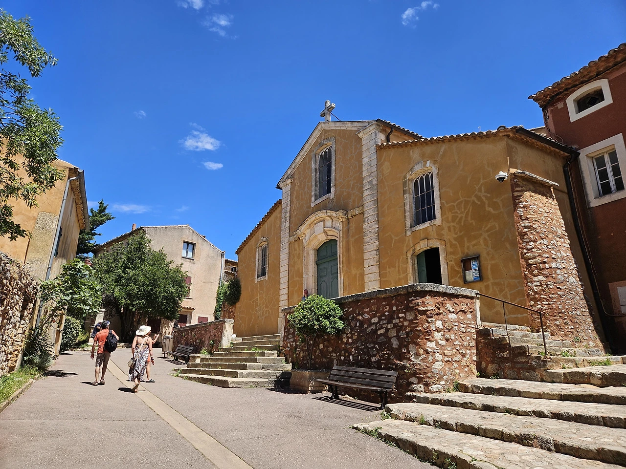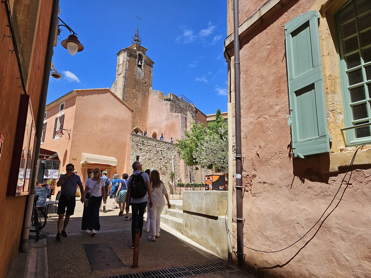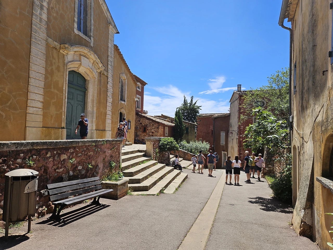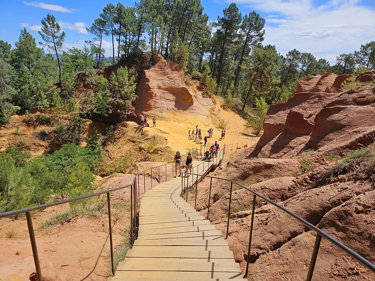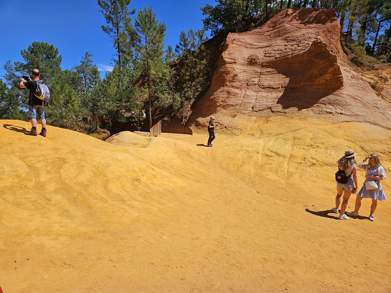 Ocre 자연공원은 황토로 이루어져 있는데 잘은 몰라도 그림물감의 Ocre색을 내는 원료인 것 같다. 공원입구 기념품점에서 물감을 팔고 있다. 티켓을 사서 올라가니 얼마 가지 않아서 예쁜 붉은 황토색 지대가 나온다. 미국 자이언캐년이 생각나는데, 그 규모로는 자이언 캐년의 방대함에 비할 수는 없다. 황토지대가 계속되는 건 아니고 그냥 산길을 트래킹 하는 거라 조금 가다가 돌아 나왔다. 세 사람 다 오르내리는 산길이 그리 반갑지는 않다.