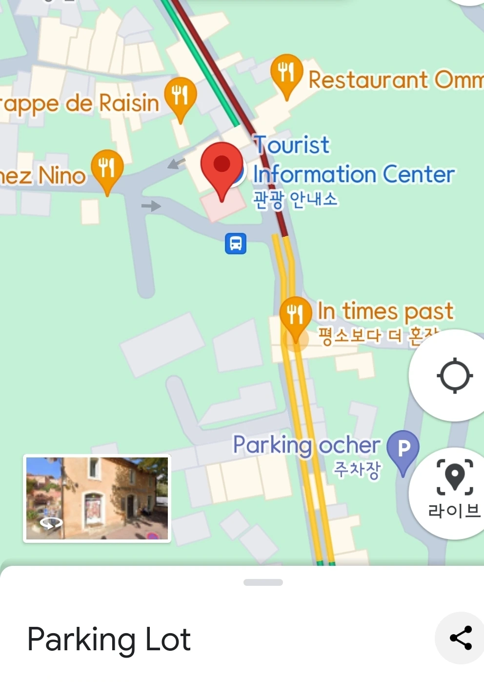 고흐드로 향했다. 마을 중심 광장에 있는 주차장으로 가려했는데, 주차요원이 막고 서서 위쪽으로 올라가라고 안내한다. 화살표를 따라가니 넓은 주차장이 나온다. 꽤 넓은데도 주차할 자리가 없다. 뱅뱅 돌다 겨우 주차했는데 주차티켓 뽑는데도 긴 줄이 늘어서 있어서 한참이 걸렸다. 차라리 들어갈 때 티켓 뽑고 나갈 때 정산하는 시스템이 더 나은 것 같다. 프랑스 사람이나 외국인이나 똑같이 기계사용에 어려움을 겪는다.