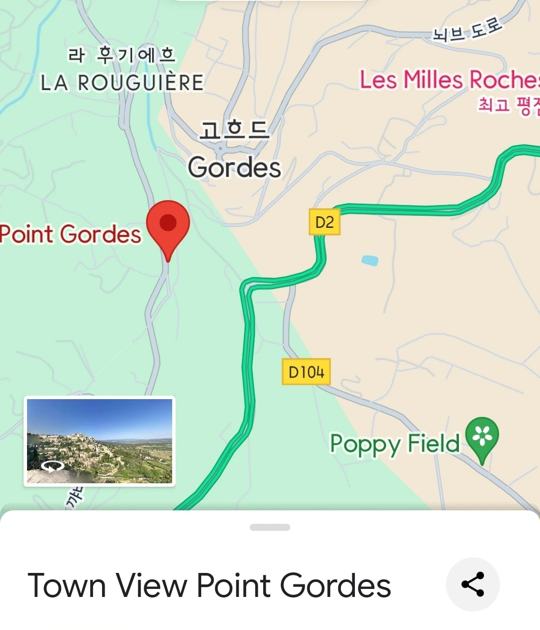 마을을 벗어난 도로에서 마을을 보는 view가 환상적이다. 이 광경만 보면 고흐드 내부는 안 보아도 된다. 이런 환상적인 위치에 왜 카페나 레스토랑이 안 생기는지, 여기다 카페 차리면 대박 나겠다.