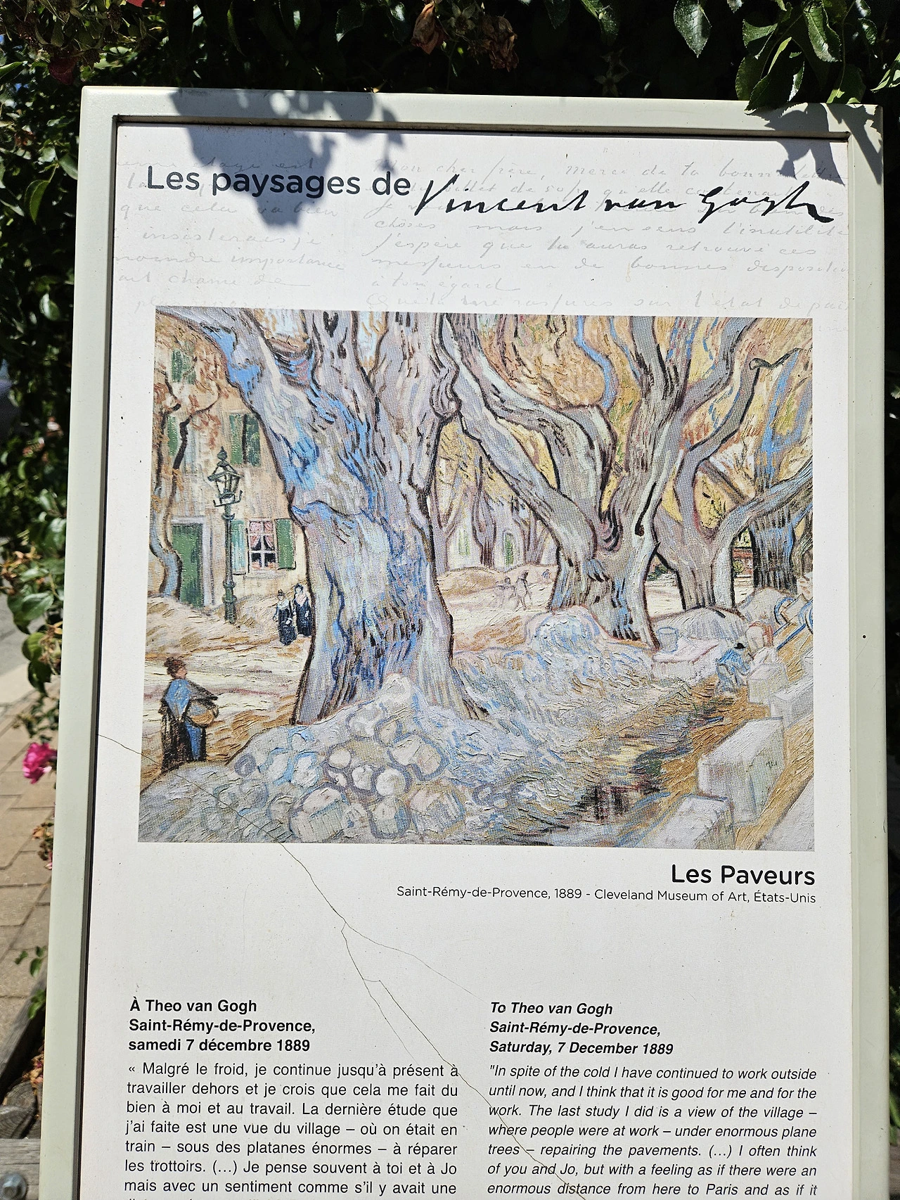 생 레미 드 프로방스 시내에도 고흐의 그림에 그려져 있는 풍경 앞에는 그 그림을 간판처럼 세워두고 있는데, 그 위치에 서면